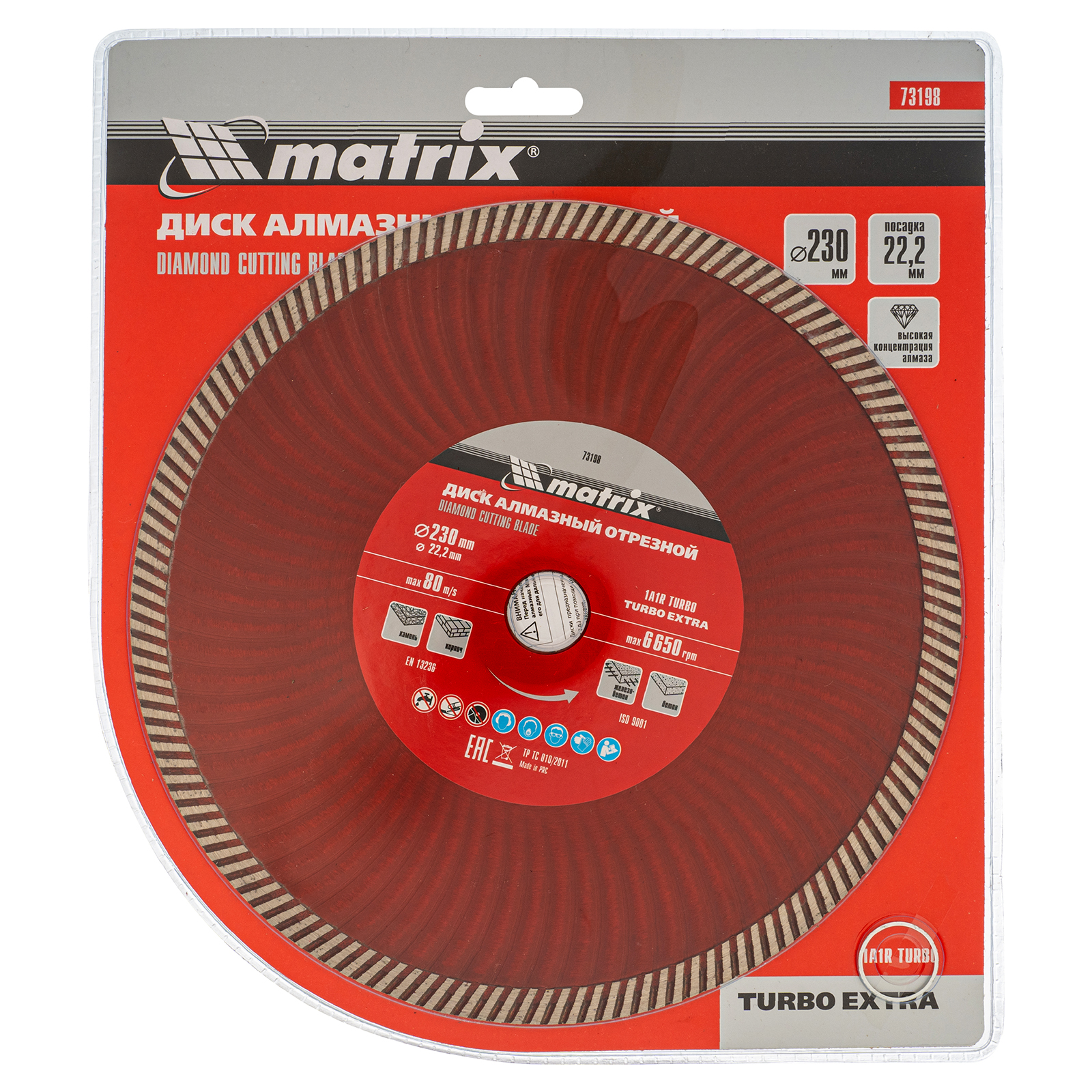 Диск алмазный, отрезной Turbo Extra, 230 х 22.2 мм, сухая резка Matrix Professional