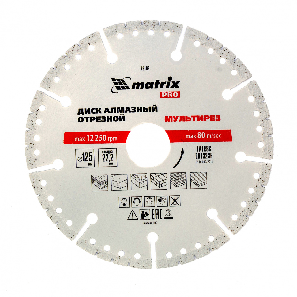 Диск алмазный отрезной мультирез D 125 х 22.2 мм, сухой/мокрый рез, Pro Ma