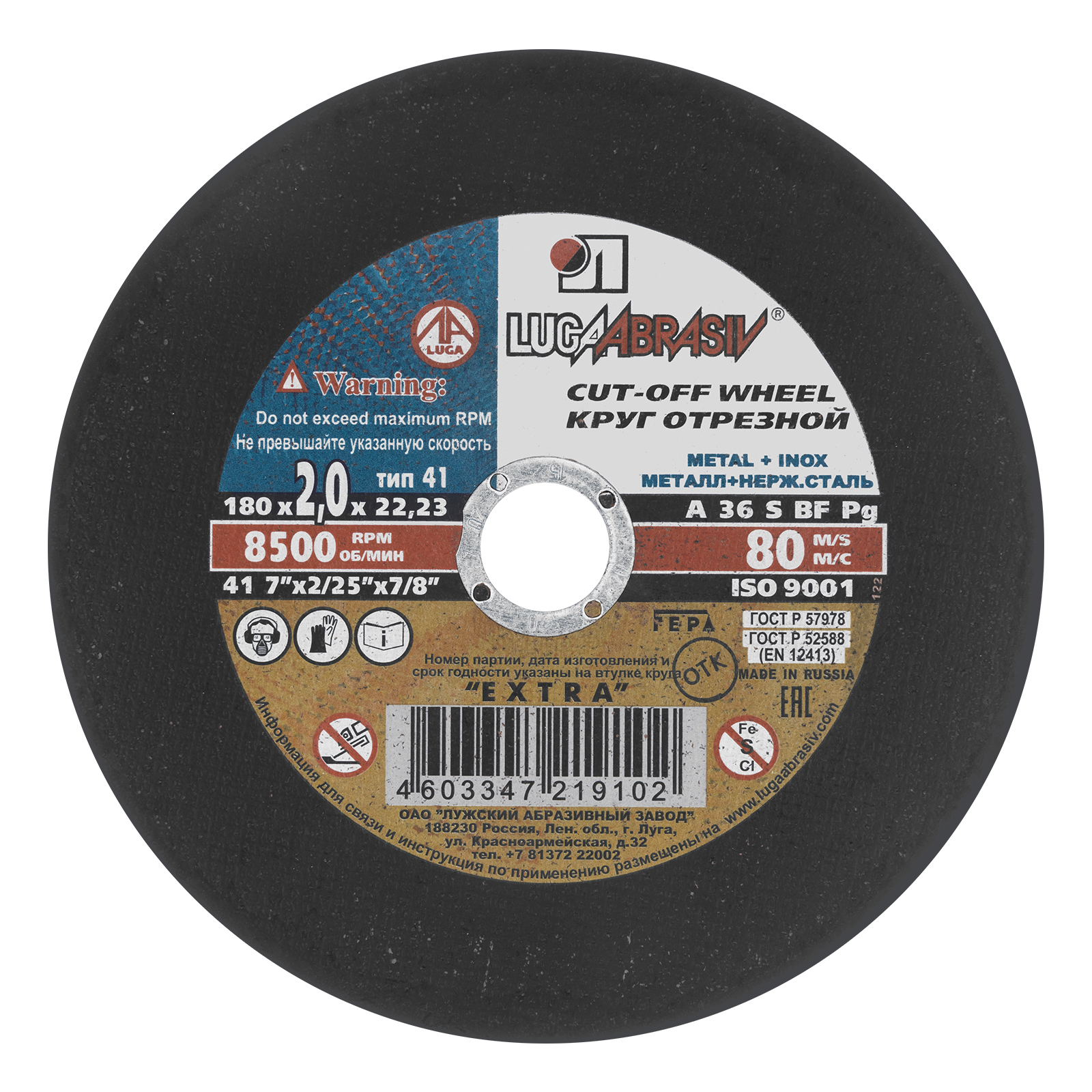 Круг отрезной по металлу, 180 х 2.0 х 22 мм луга
