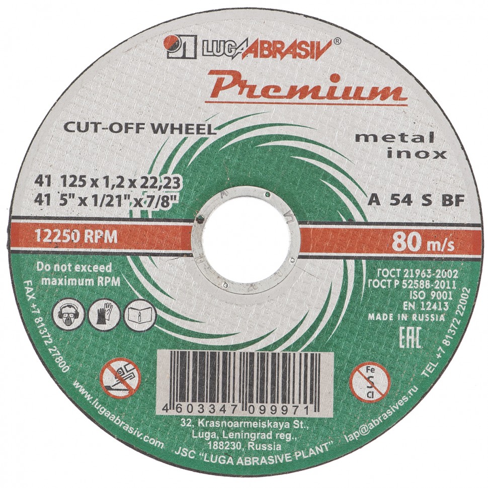 Круг отрезной по металлу и нержавеющей стали, 125 х 1,0 х 22 мм, премиум л