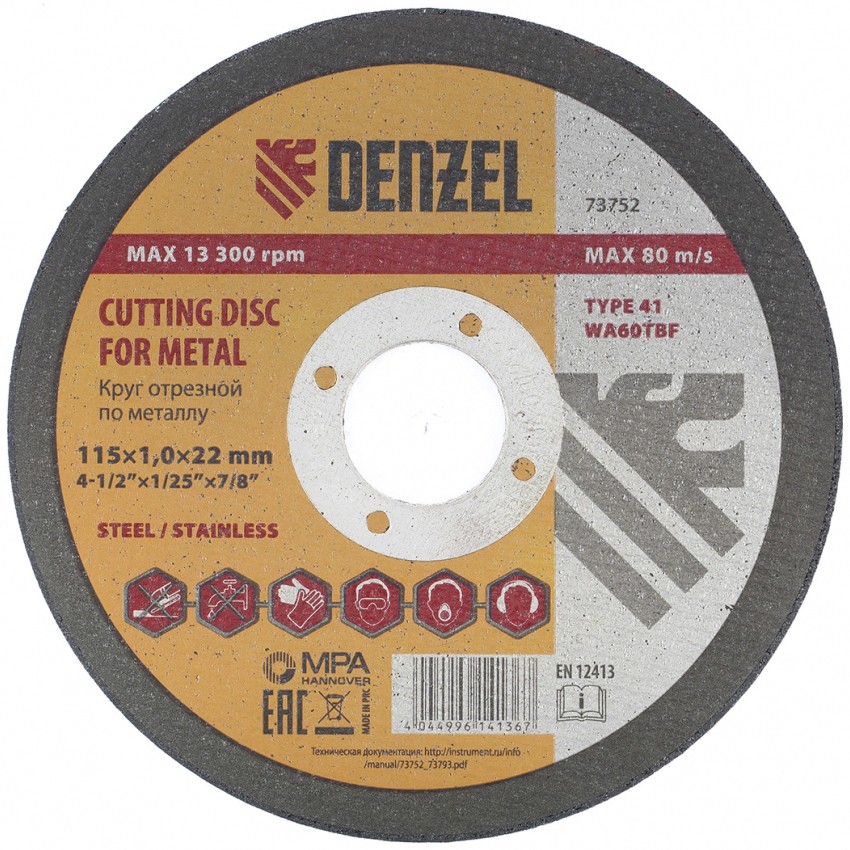 Круг отрезной по металлу, 115 х 1 х 22,2 мм Denzel
