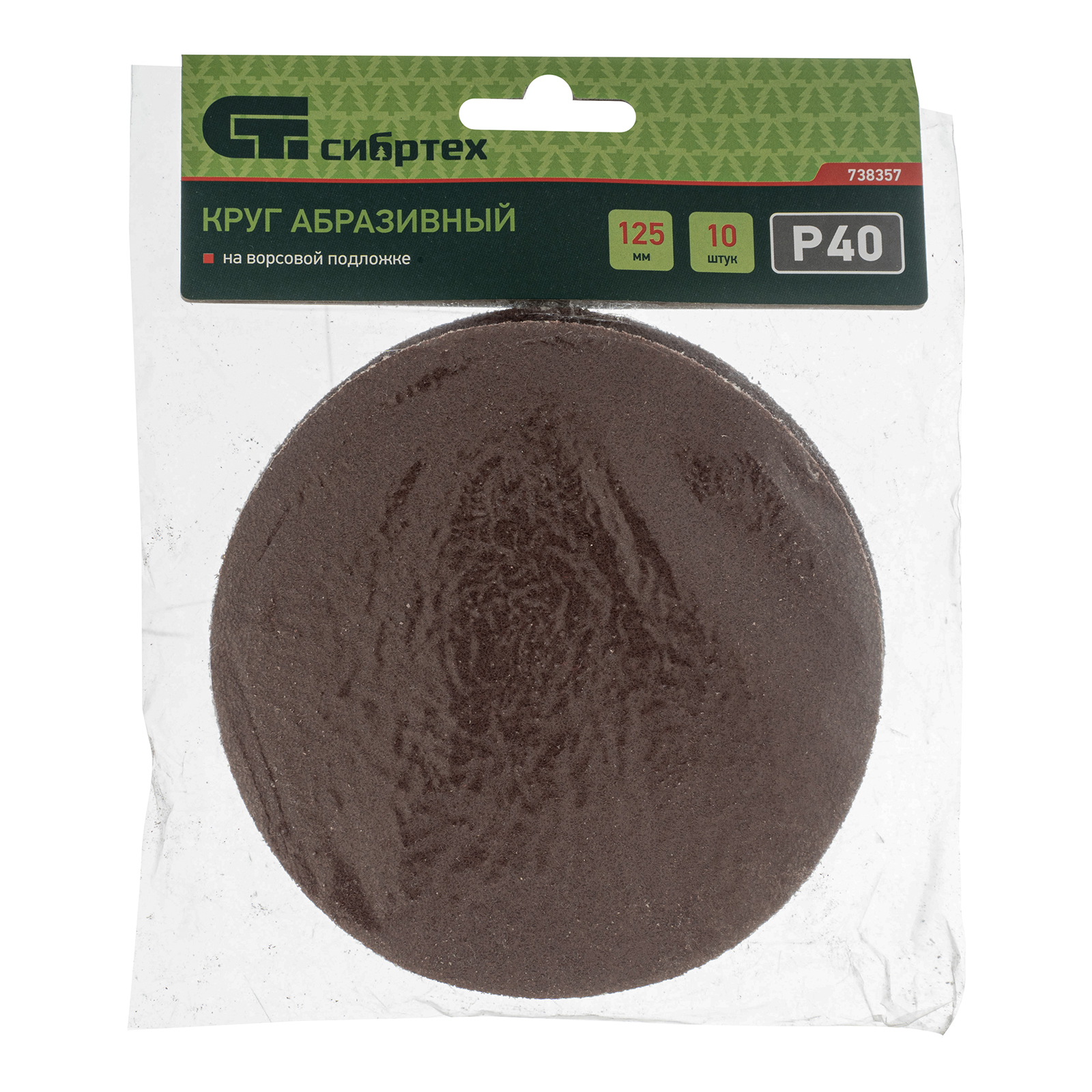 Круг абразивный на ворсовой подложке под липучку, P 40, 125 мм, 10 шт сибртех
