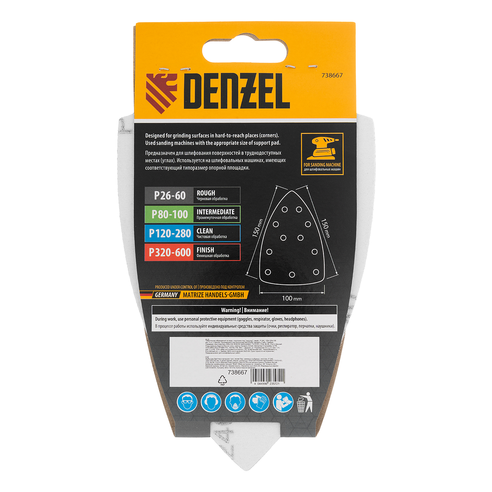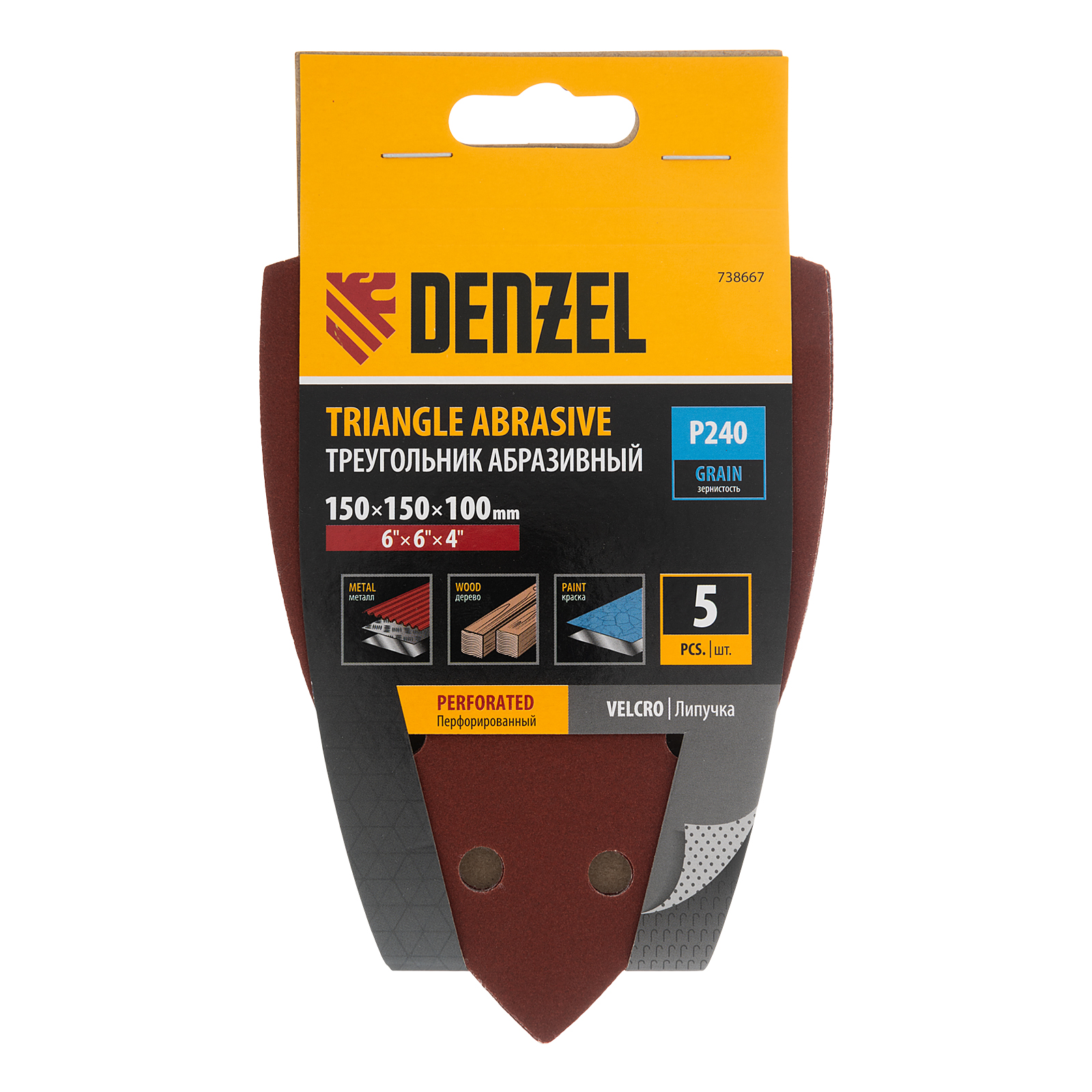 Треугольник абразивный на ворc. подложке под липучку, перф., P 240, 150х150х100 мм, 5 шт. Denzel
