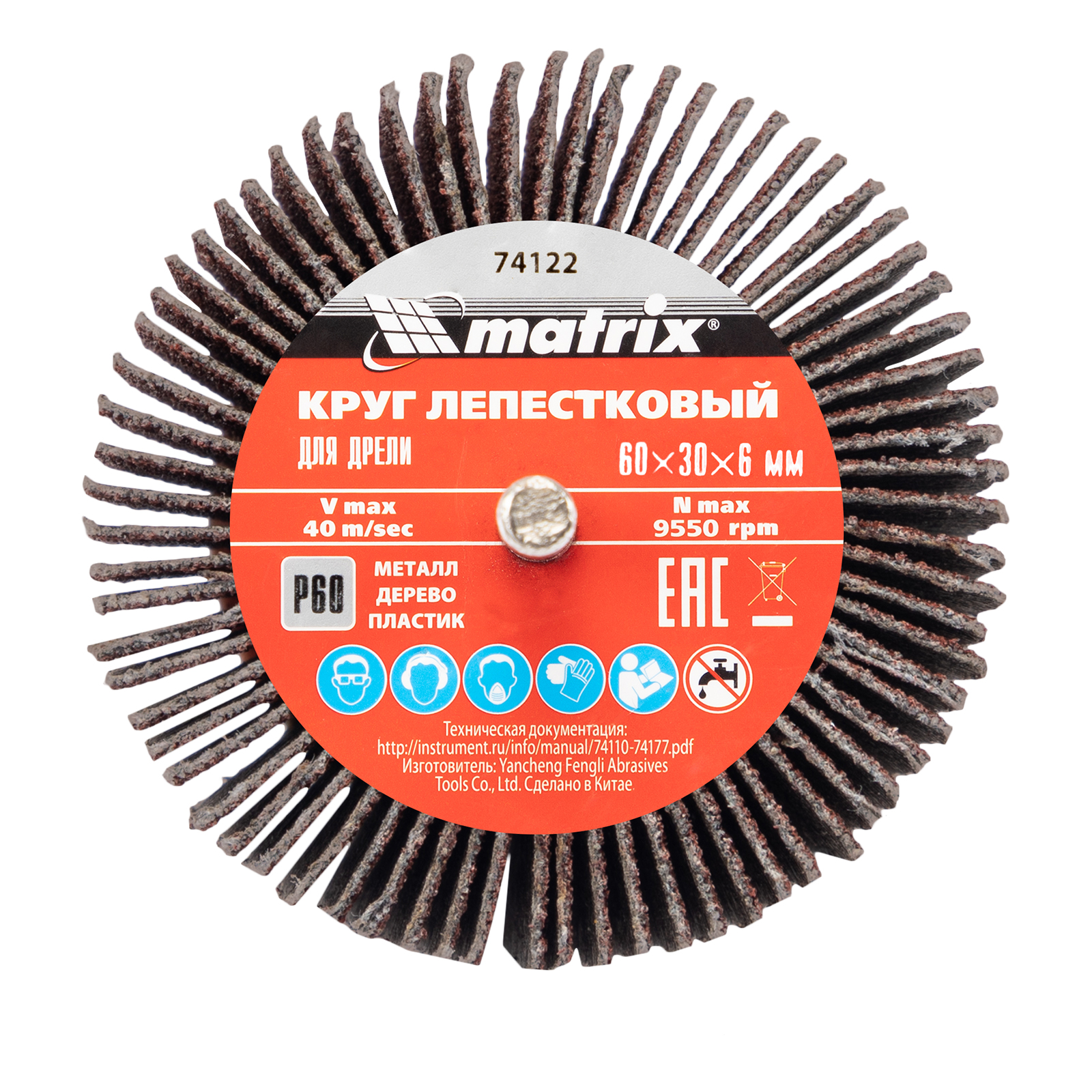 Круг лепестковый для дрели, 60 х 30 х 6 мм, P 60 Matrix