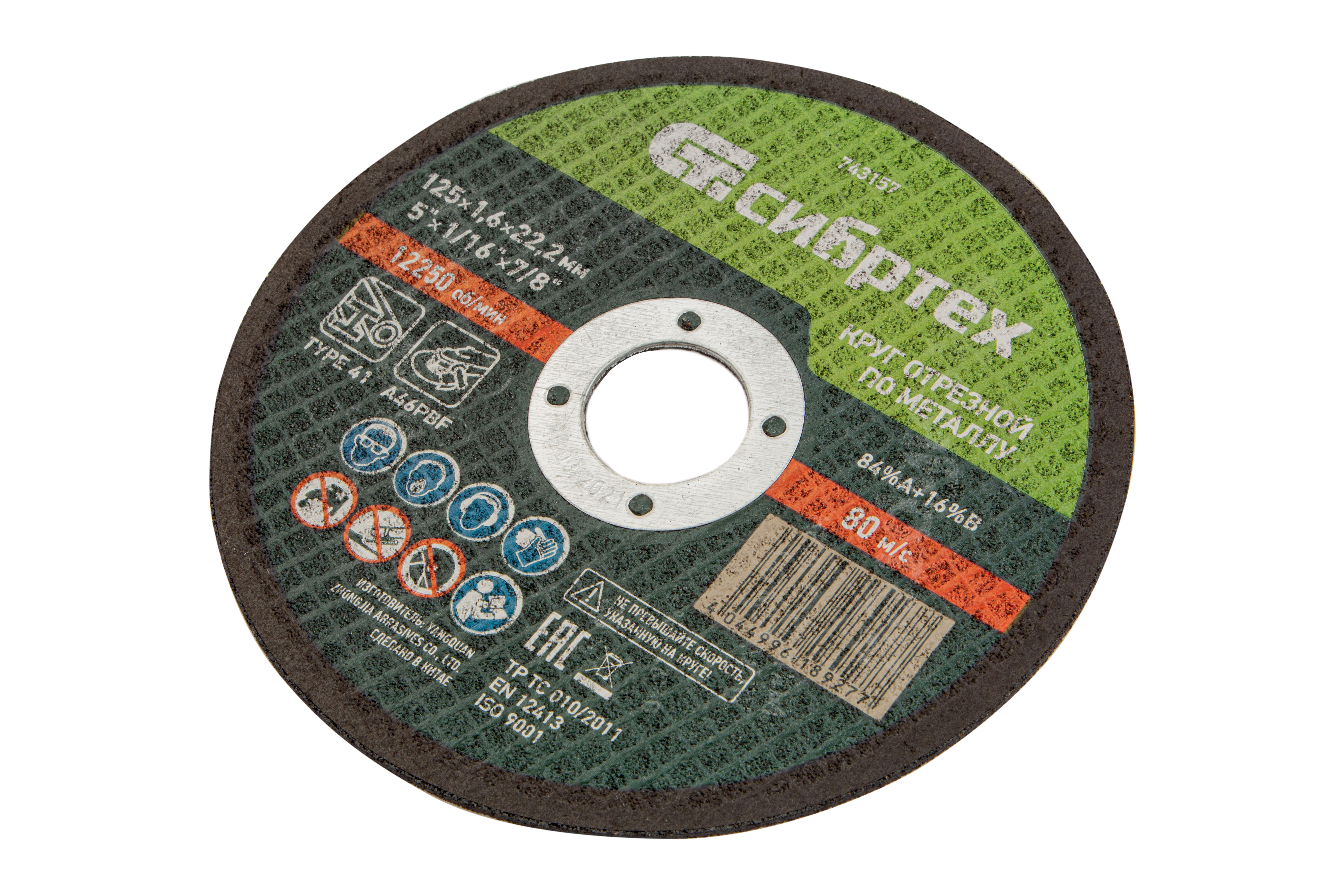 Круг отрезной по металлу, 125 х 1,6 х 22,2 мм сибртех