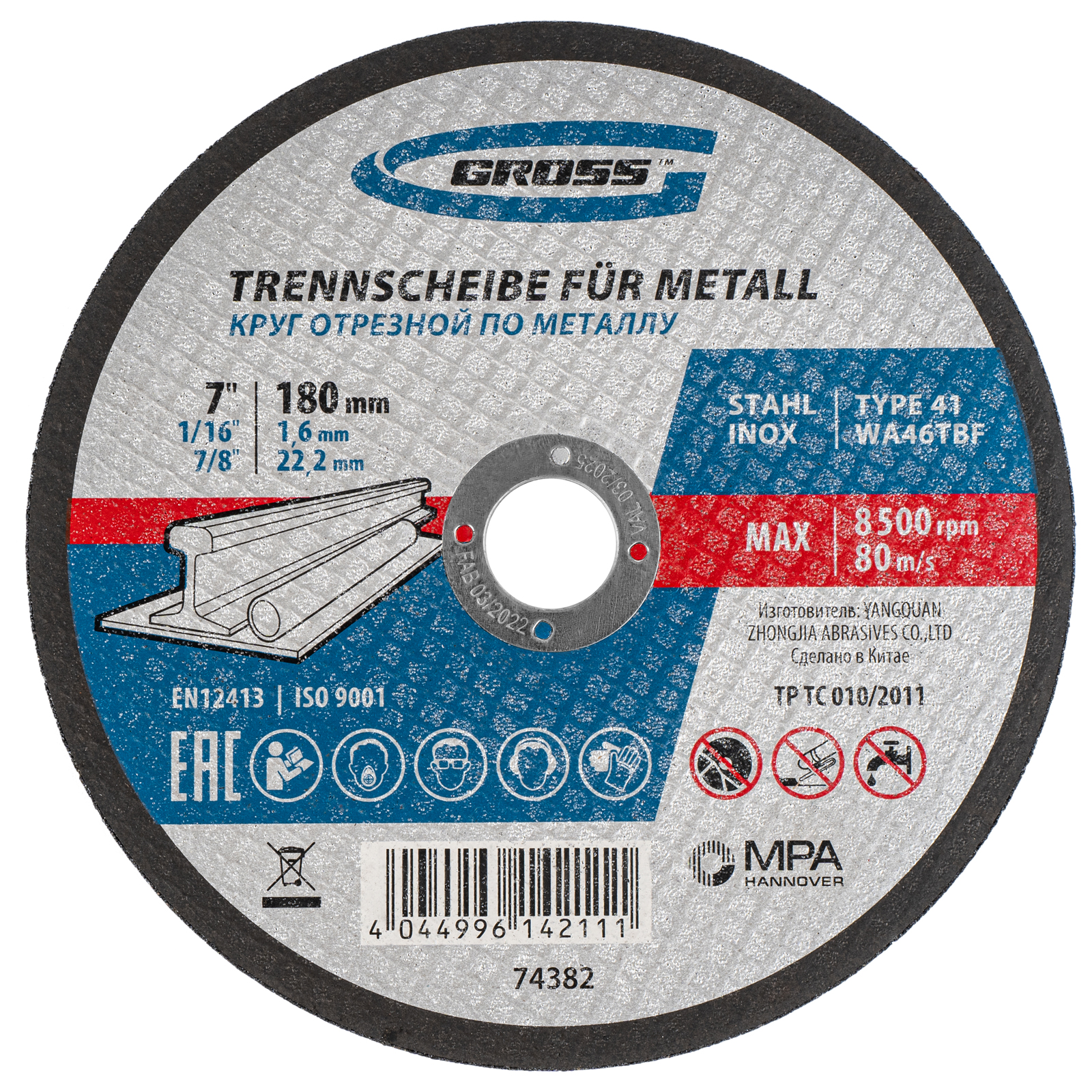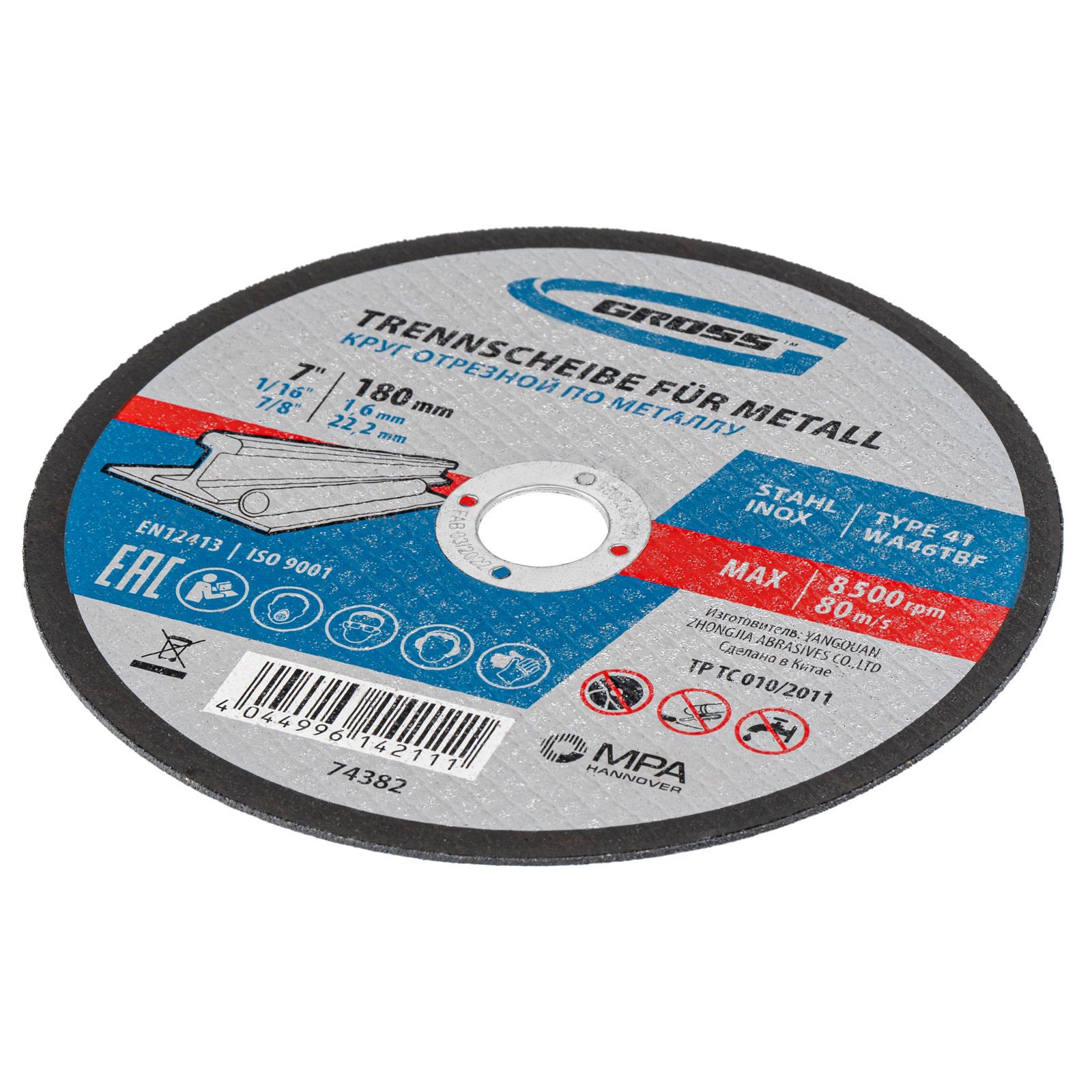 Круг отрезной по металлу, 180 х 1.6 х 22.2 мм Gross