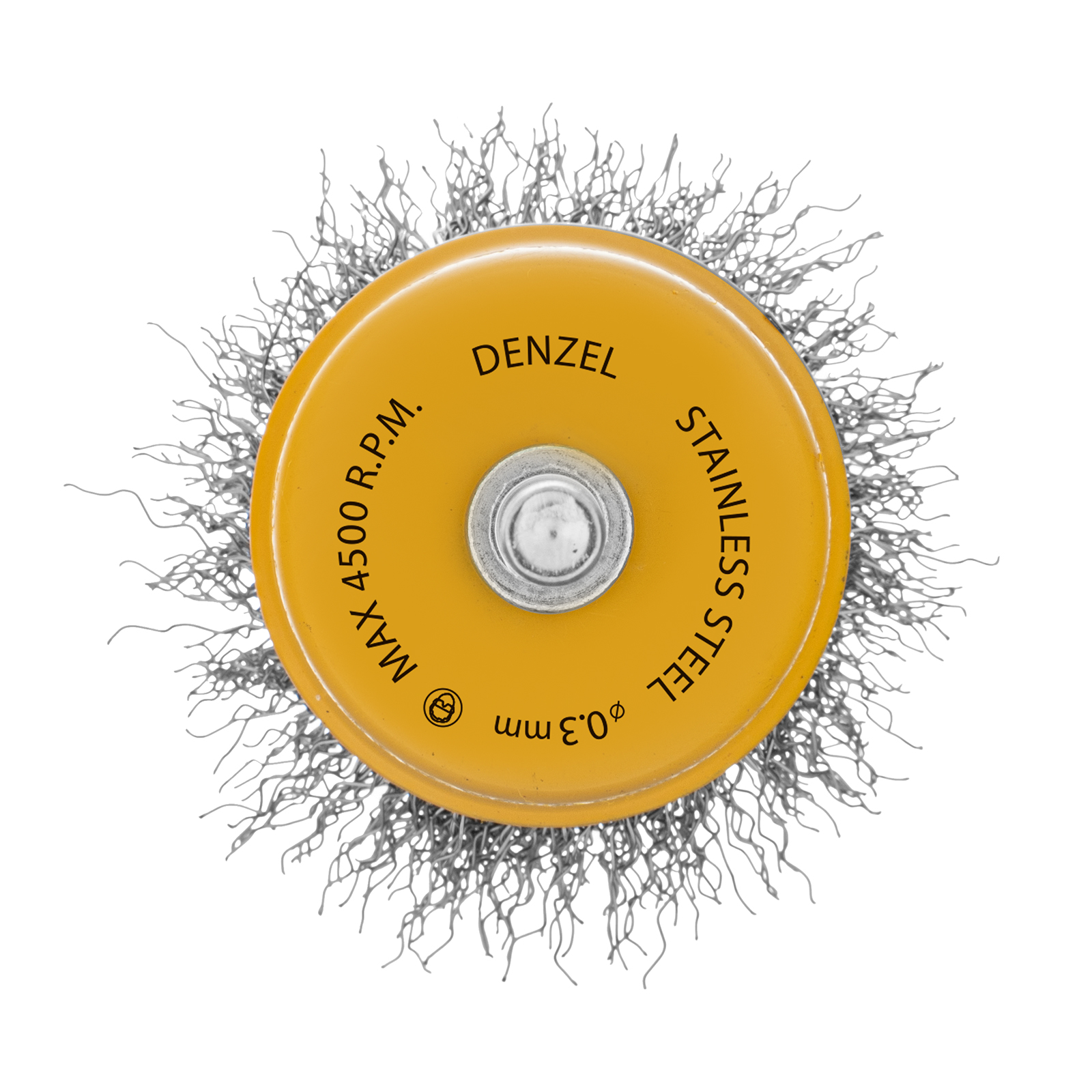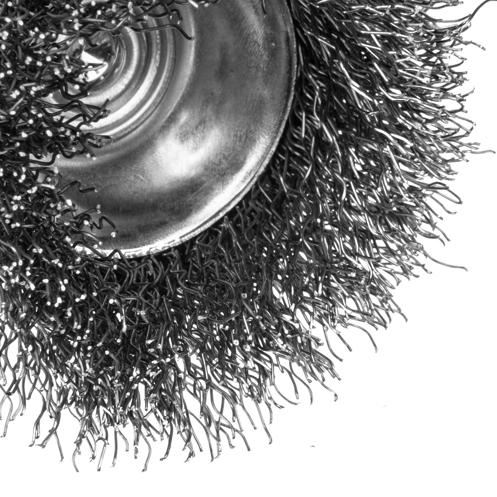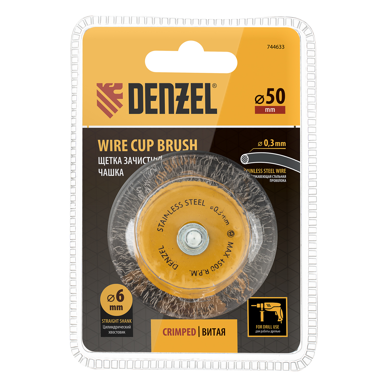 Щетка для дрели, 50 мм, чашка, со шпилькой, нержавеющая витая проволока Denzel