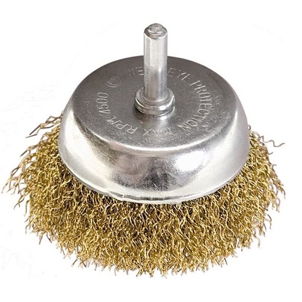 Щетка для дрели, 50 мм, чашка со шпилькой, латунированная витая проволока