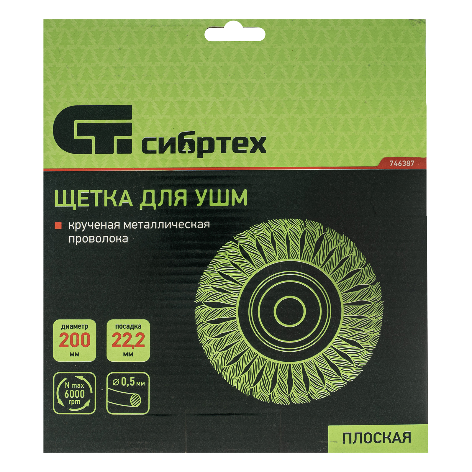 Щетка для ушм, 200 мм, посадка 22.2 мм, плоская, крученая проволока 0.5 мм сибртех