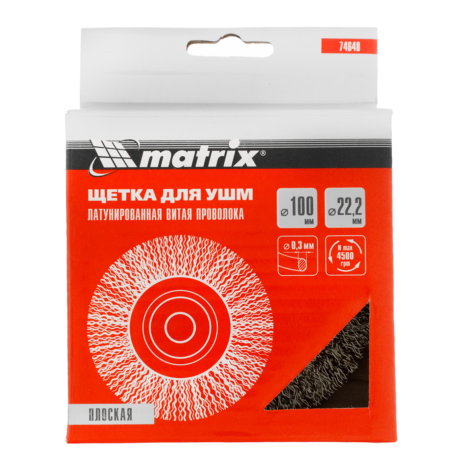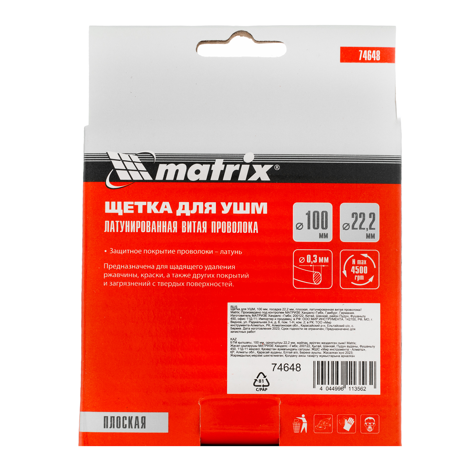 Щетка для ушм, 100 мм, посадка 22.2 мм, плоская, латунированная витая проволока Matrix