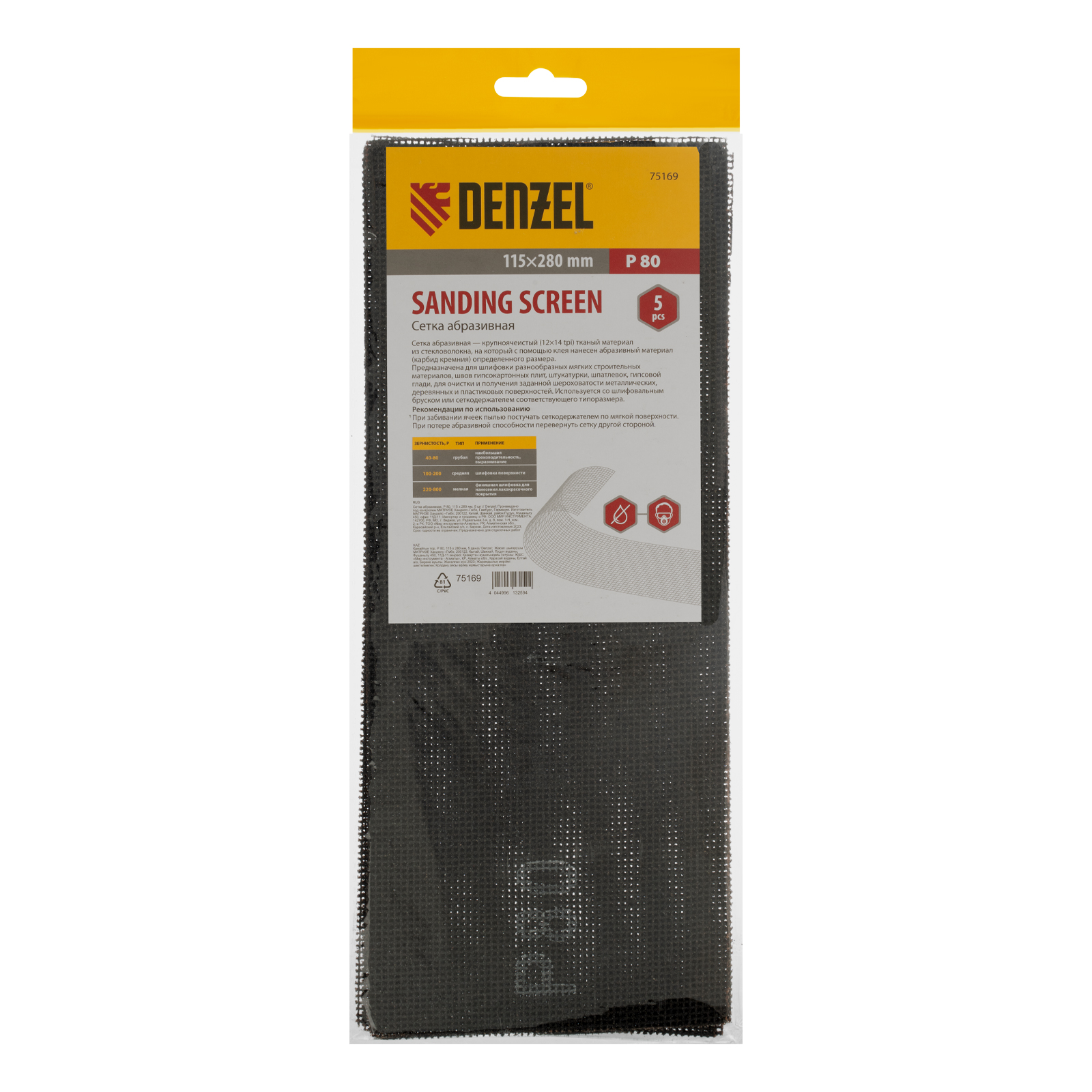 Сетка абразивная, P 80, 115 х 280 мм, 5 шт Denzel