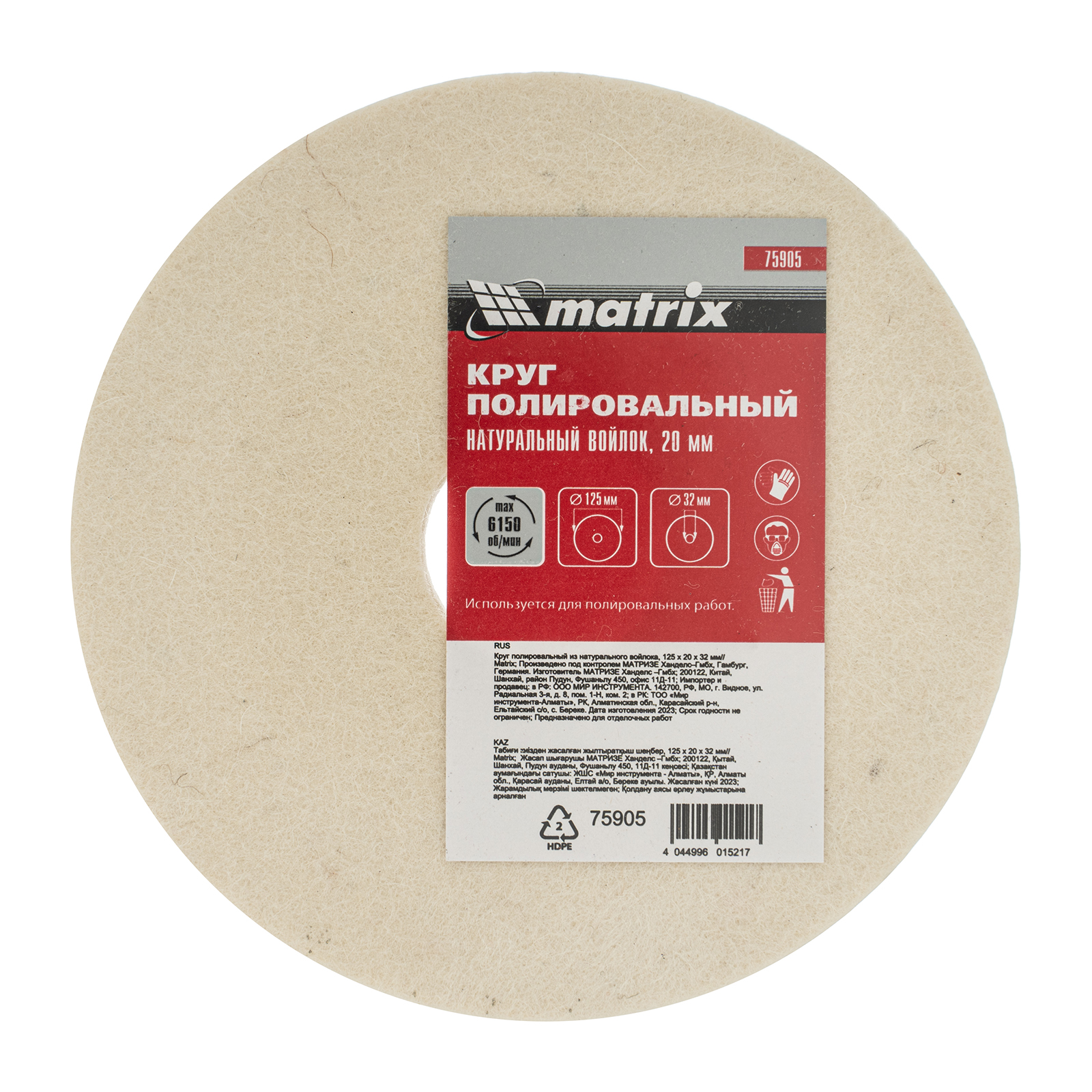 Круг полировальный из натурального войлока, 125 х 20 х 32 мм Matrix Круг полировальный из натурального войлока, 125 х 20 х 32 мм Matrix Круг полировальный из натурального войлока, 125 х 20 х 32 мм Matrix