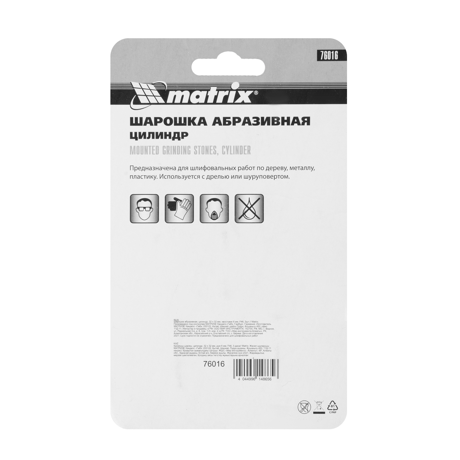 Шарошка абразивная, цилиндр, 32 X 32 X 6 мм, F46, 3 шт Matrix