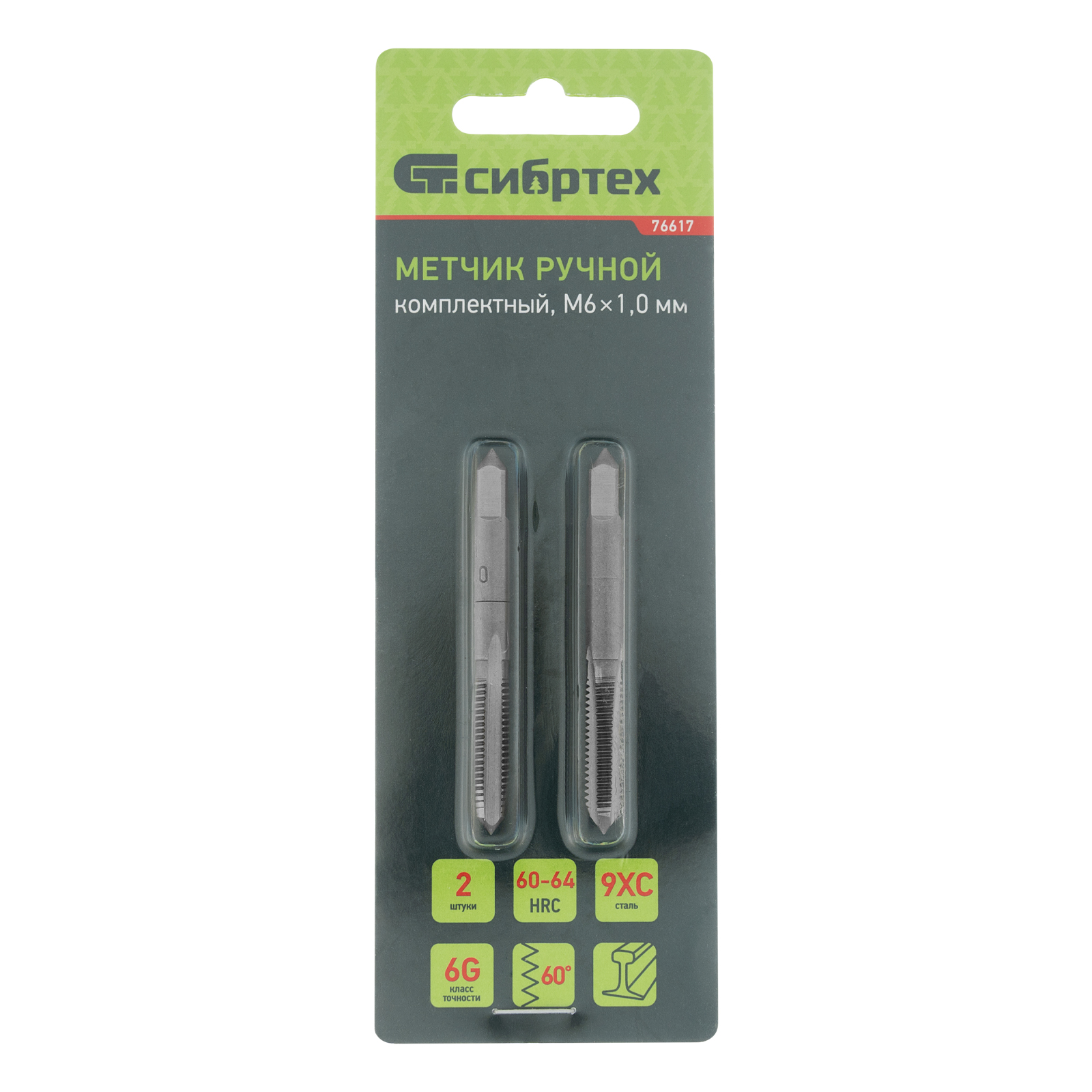 Метчик ручной м6 х 1 мм, комплект из 2 шт сибртех