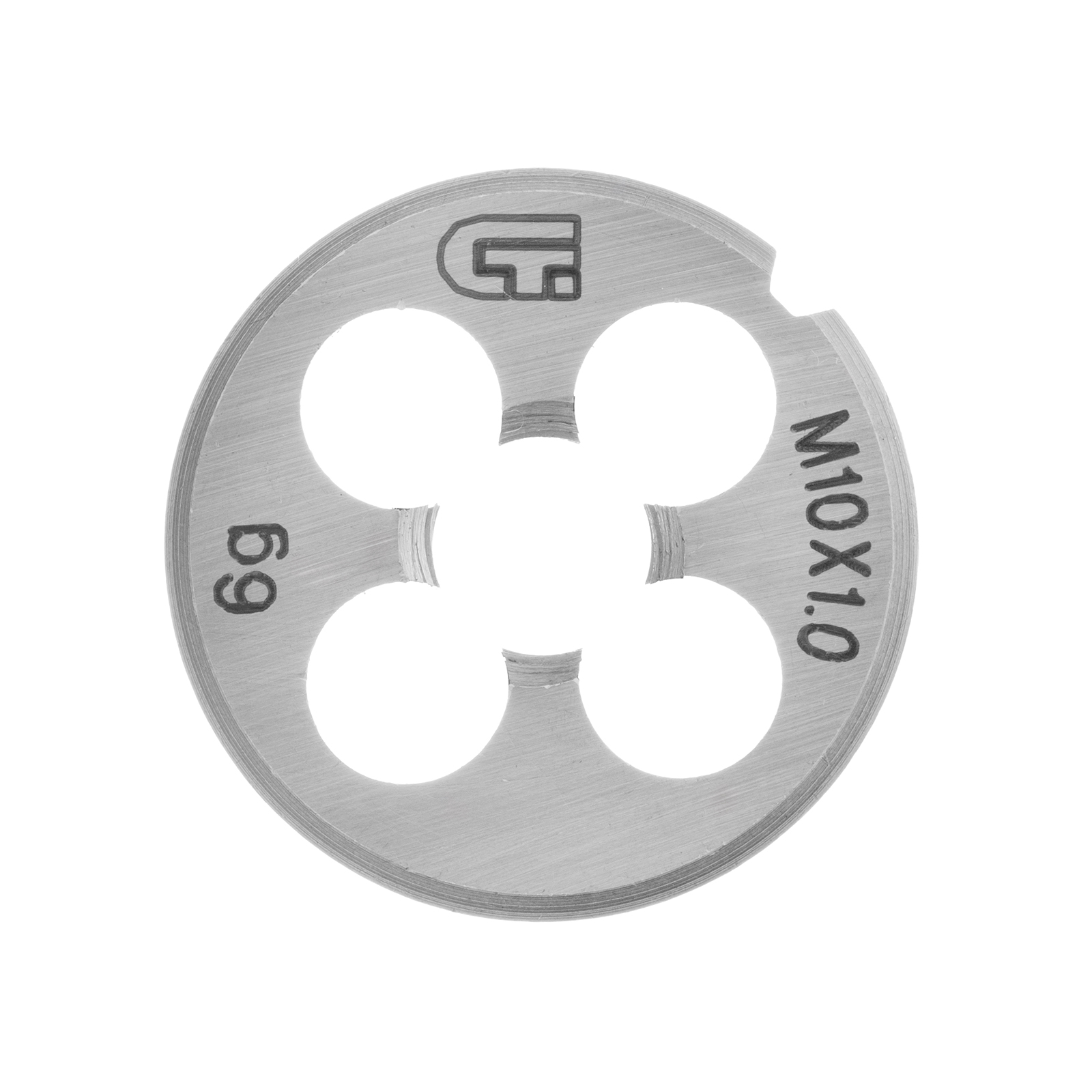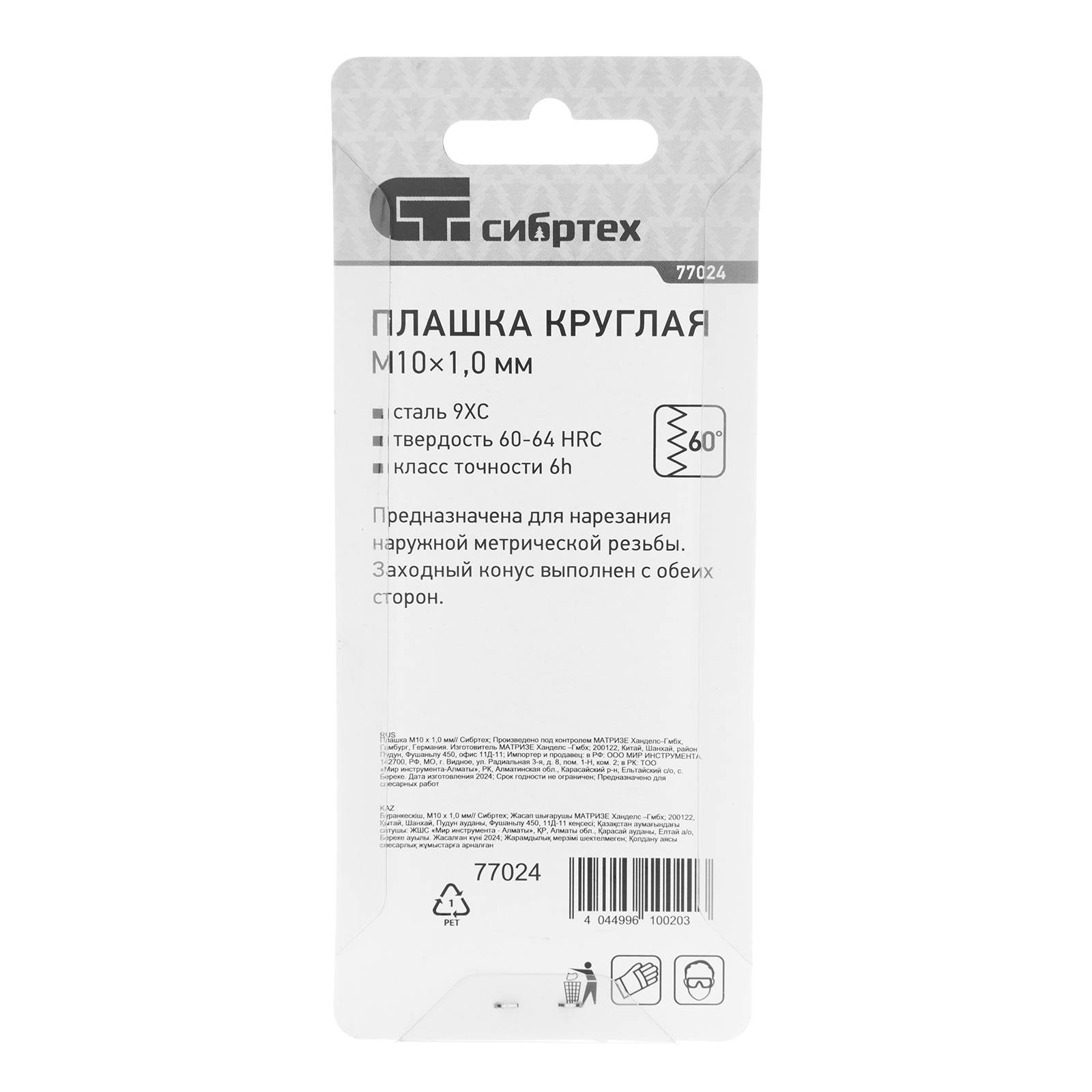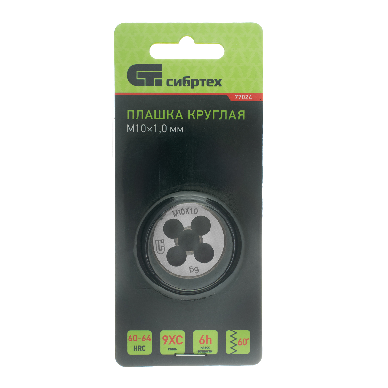 Плашка м10 х 1 мм сибртех. Бренд: Сибртех Гарантия: нет Класс точности: 6H Марка стали: 9ХС Направление резьбы: правая Страна производства: Китай Тип упаковки: сэндвич-блистер Вес (брутто), кг: 0.04 Плашка: 1 шт Плашка Сибртех 77024 типоразмера М10 х 1,0 мм предназначена для нарезания внешней метрической резьбы. Проста в использовании, поэтому пригодится даже начинающему мастеру для проведения слесарных и монтажных работ в быту. Цельная конструкция плашки позволяет полностью захватить деталь и нарезать высокоточную резьбу за один проход. Преимущества Надежность и долговечность — плашка изготовлена из инструментальной стали 9XC, режущие кромки закалены до твердости 60 HRC в соответствии с ГОСТом. Эффективная работа — плашка имеет 4 рабочие зоны, ей присвоен класс точности 6H, что соответствует европейским стандартам качества. Высокая скорость нарезки — глубокие зоны обеспечивают эффективный отвод стружки. Быстрый поиск нужной плашки — на корпусе имеется крупная маркировка с обозначением размера.  развернуть описание ▼
