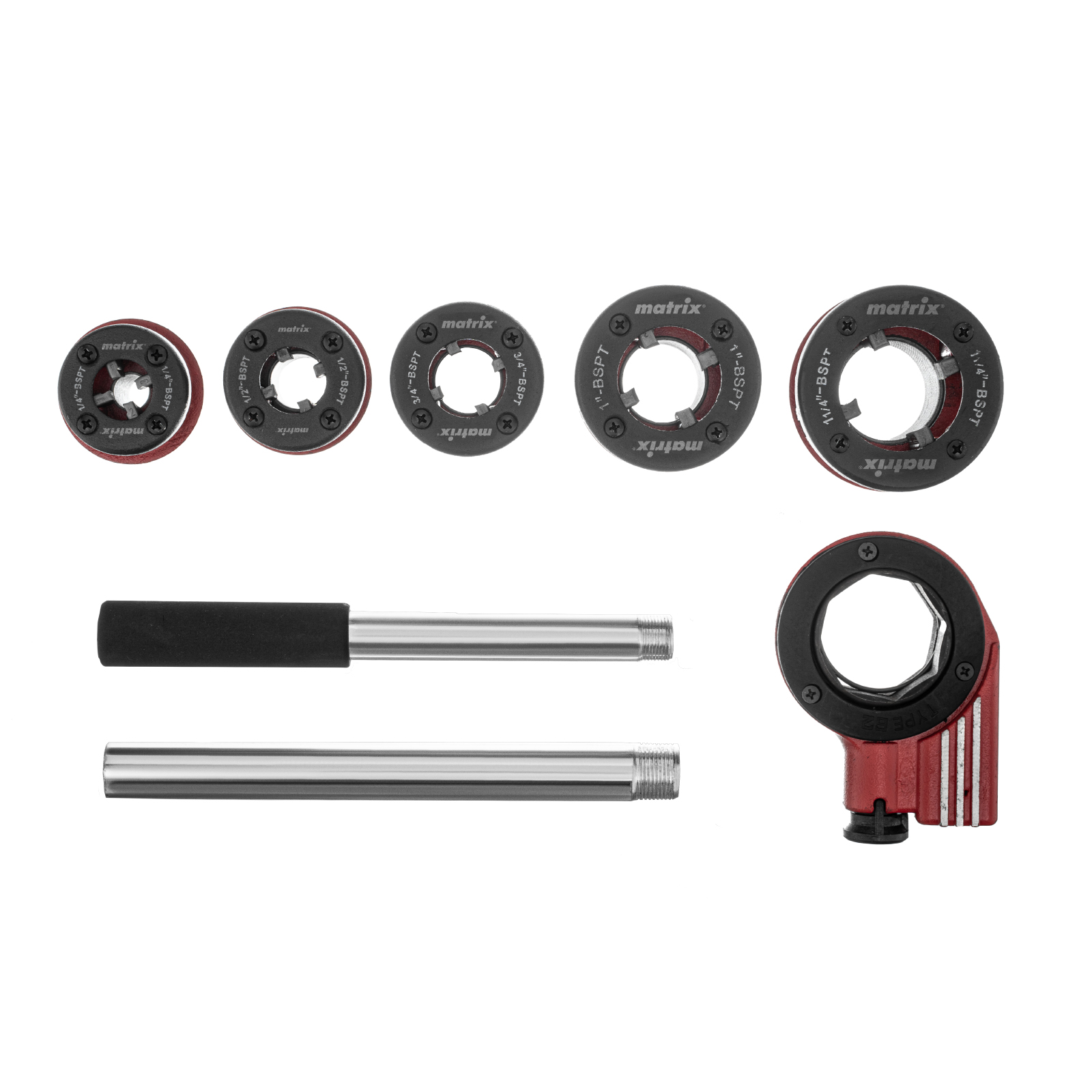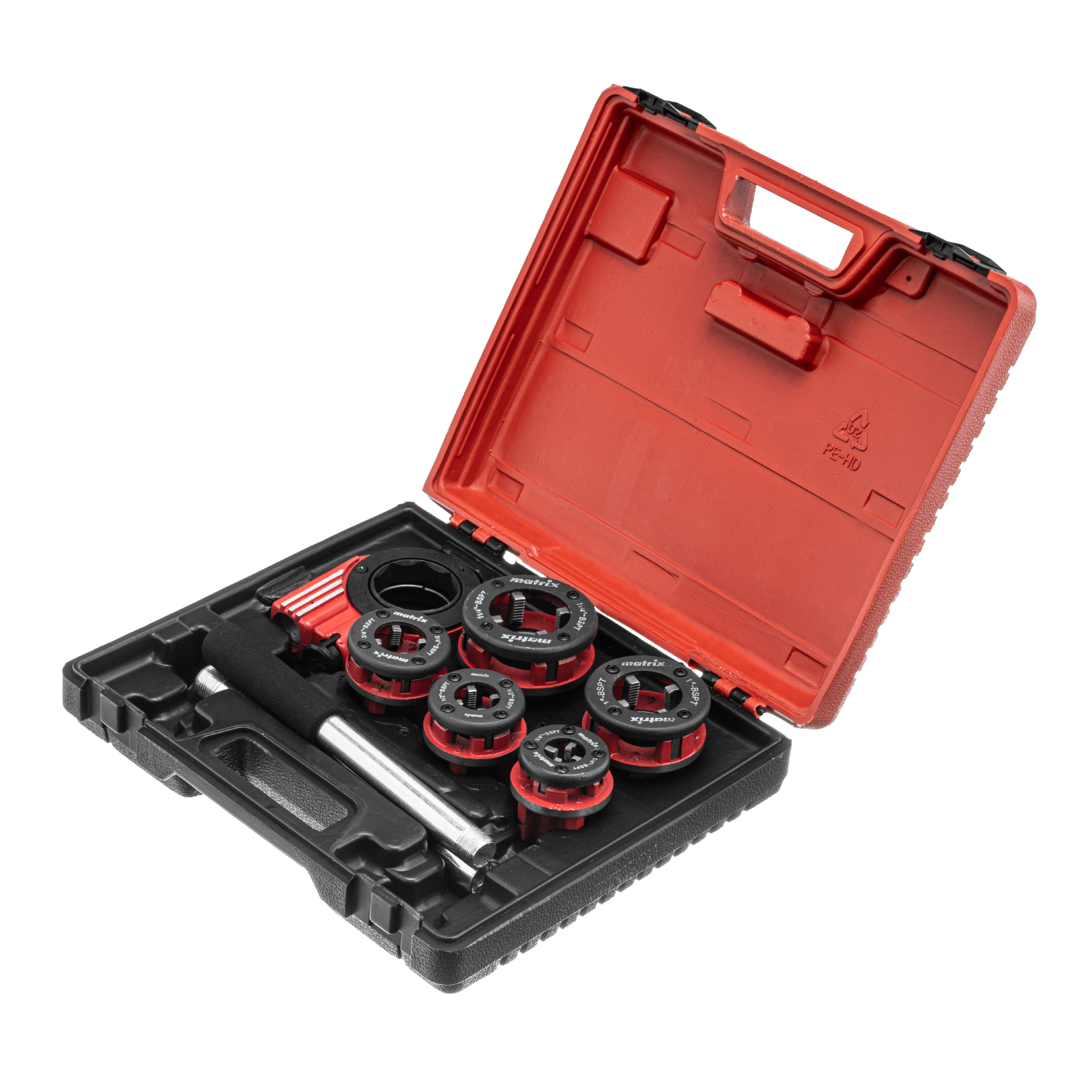 Набор клуппов 1/4-1/2-3/4-1-1.25+ плашкодержатель с трещоткой, 8 предметов Matrix