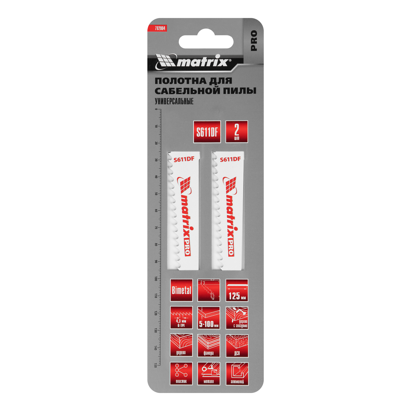 Полотна универсальные для сабельной пилы S611df 125/4.3 мм, Bimetal, 2 шт, Pro Matrix