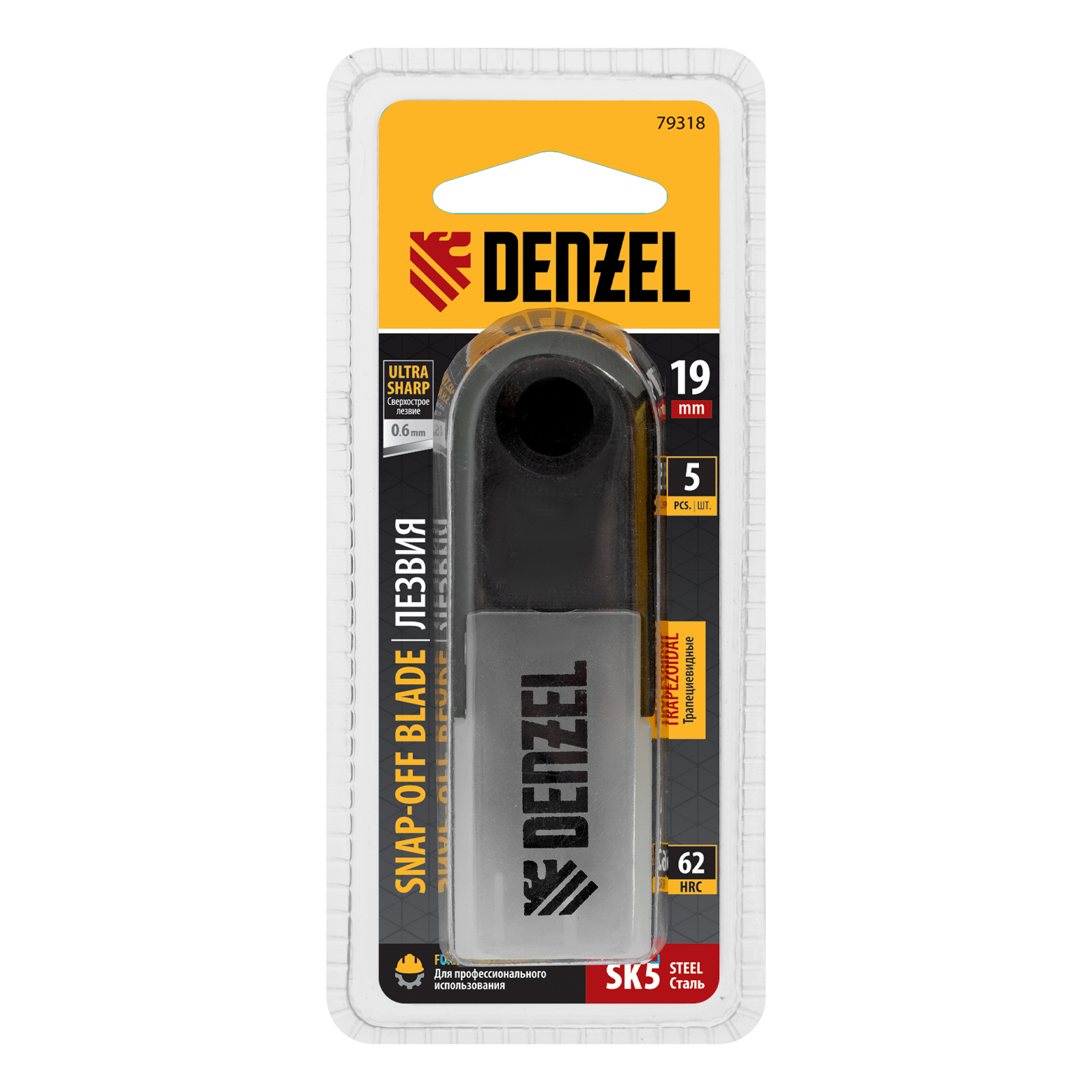 Лезвия, 19 мм, сталь Sk5 - 0,6 мм, трапециевидные, 5 штук Denzel