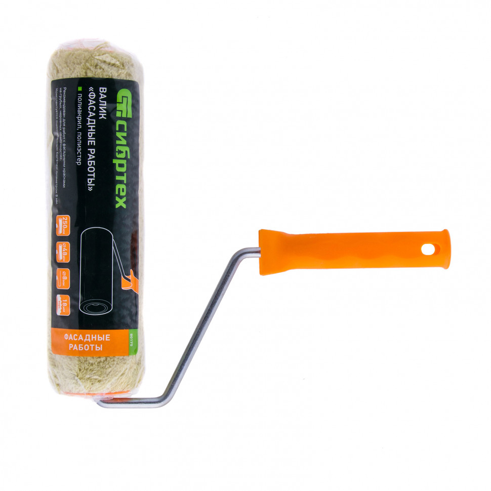 Валик фасадные работы, 250 мм, ворс 18 мм, D 48 мм, D ручки 8 мм, полиакрил, полиэстер сибртех