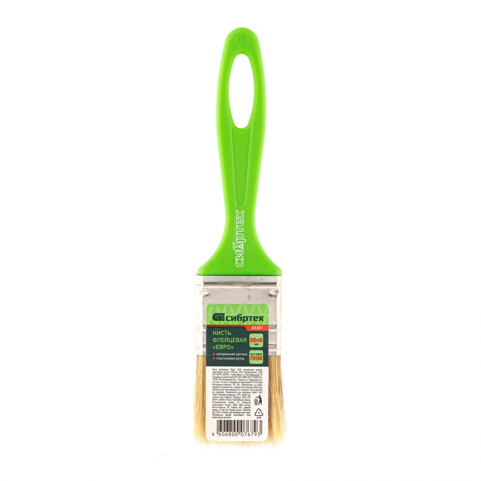 Кисть флейцевая евро, 35 X 8, натуральная щетина, пластиковая ручка сибртех