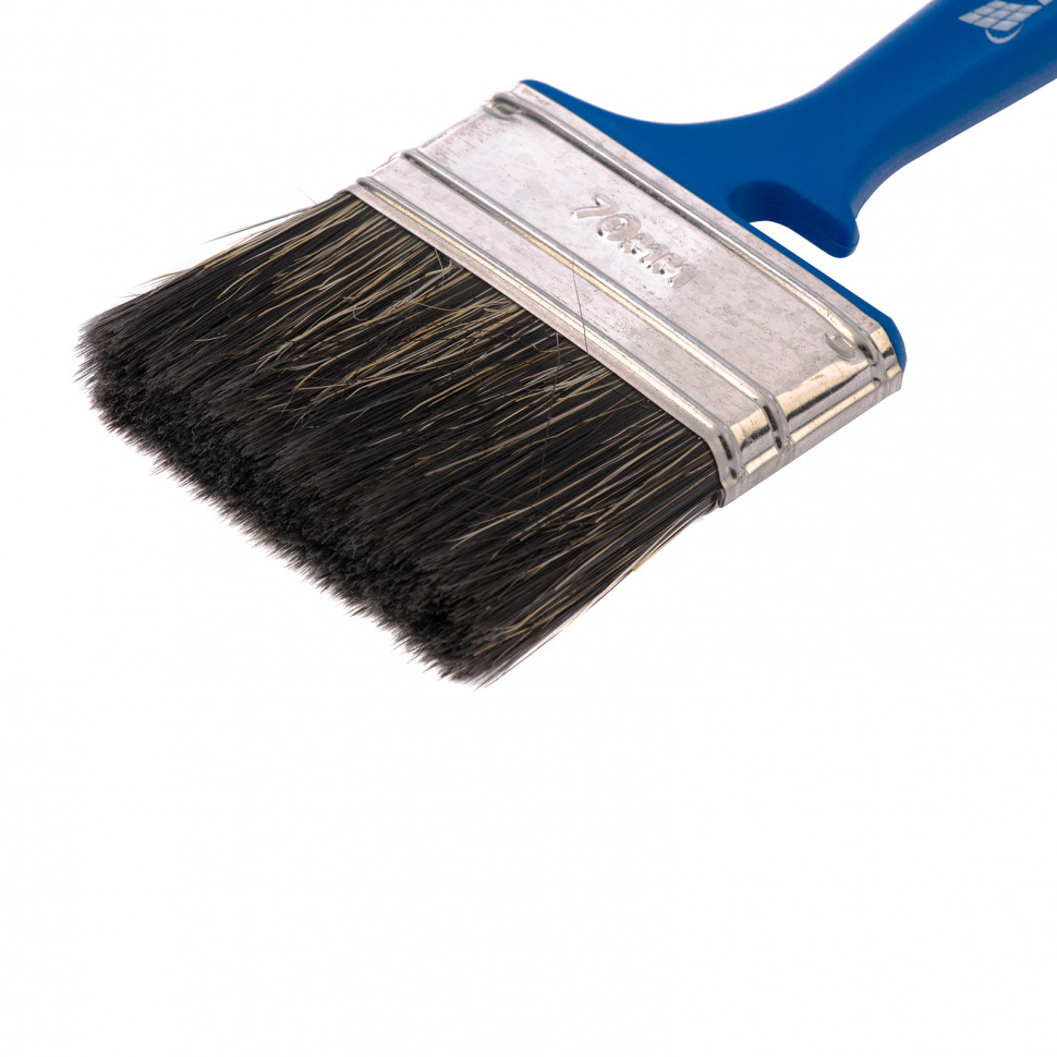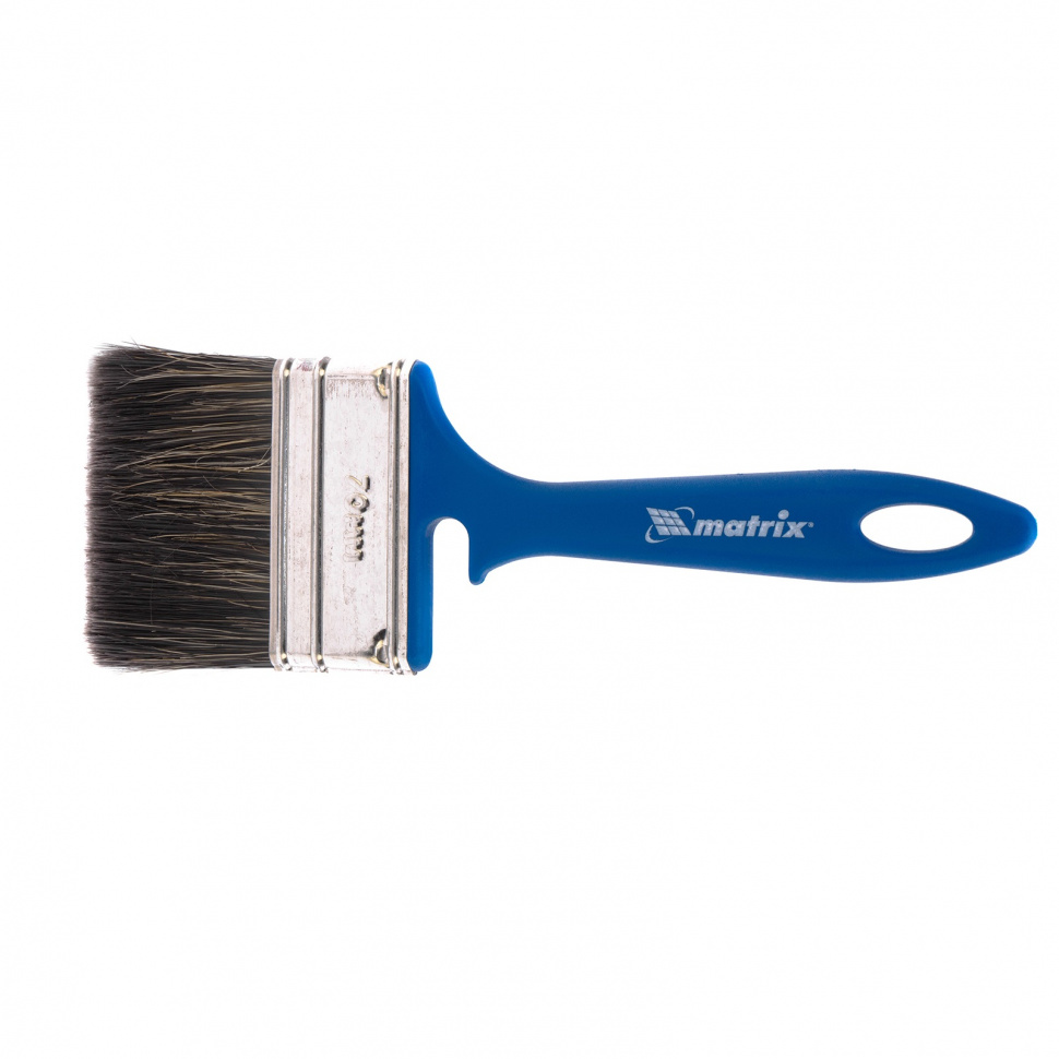 Кисть флейцевая водные краски color line 70 x 12 мм пластик matrix. Описание: Кисть для работы с Водными красками требует повышенного качества инструмента, в связи с чем российские специалисты разработали специальный состав волокна из смеси натуральной и искусственной щетины, это идеальное решение для всех покрасочных работ с ЛКМ на водной основе. Данные высококачественные кисти так же рекомендуется к использованию при работах по дереву. Состав щетины PET, PBT, NYLON, натуральная свиная щетина не менее 35-40%. ТОПС 75%. Повышенное качество инструмента, износостойкость, эластичность и память щетины. Расщепление на кончиках и ТОПС изготовлены специально для создания безупречных поверхностей покраски. Пластиковые клинья увеличивает срок службы кисти в несколько раз, предотвращают деформацию инструмента при замачивании. Уникальный клеевой рецепт эпоксидной смолы фиксируют щетину при работе с агрессивными ЛКМ. Возможность крепления на банку с краской, малярное ведро или ванночку. Рукоятка смоделирована для продолжительных работ, поэтому при длительной покраске не устает рука. Вес (кг): 0,056 Бренд: MATRIX Тип упаковки: пакет Тип: плоская Материал рукоятки: пластик Ширина (мм): 70 Толщина: 12 мм Материал бандажа: металл Щетина: смешанная Длина в упаковке (мм): 208 Ширина в упаковке (мм): 70 Высота в упаковке (мм): 14 Группа 1: 8-Строительно-отделочный инструмент Группа: Кисти по назначению MATRIX COLOR LINE Группа 3: 833-Кисти c пластиковой ручкой по назначению MATRIX COLOR LINE Тип скидки: Импорт