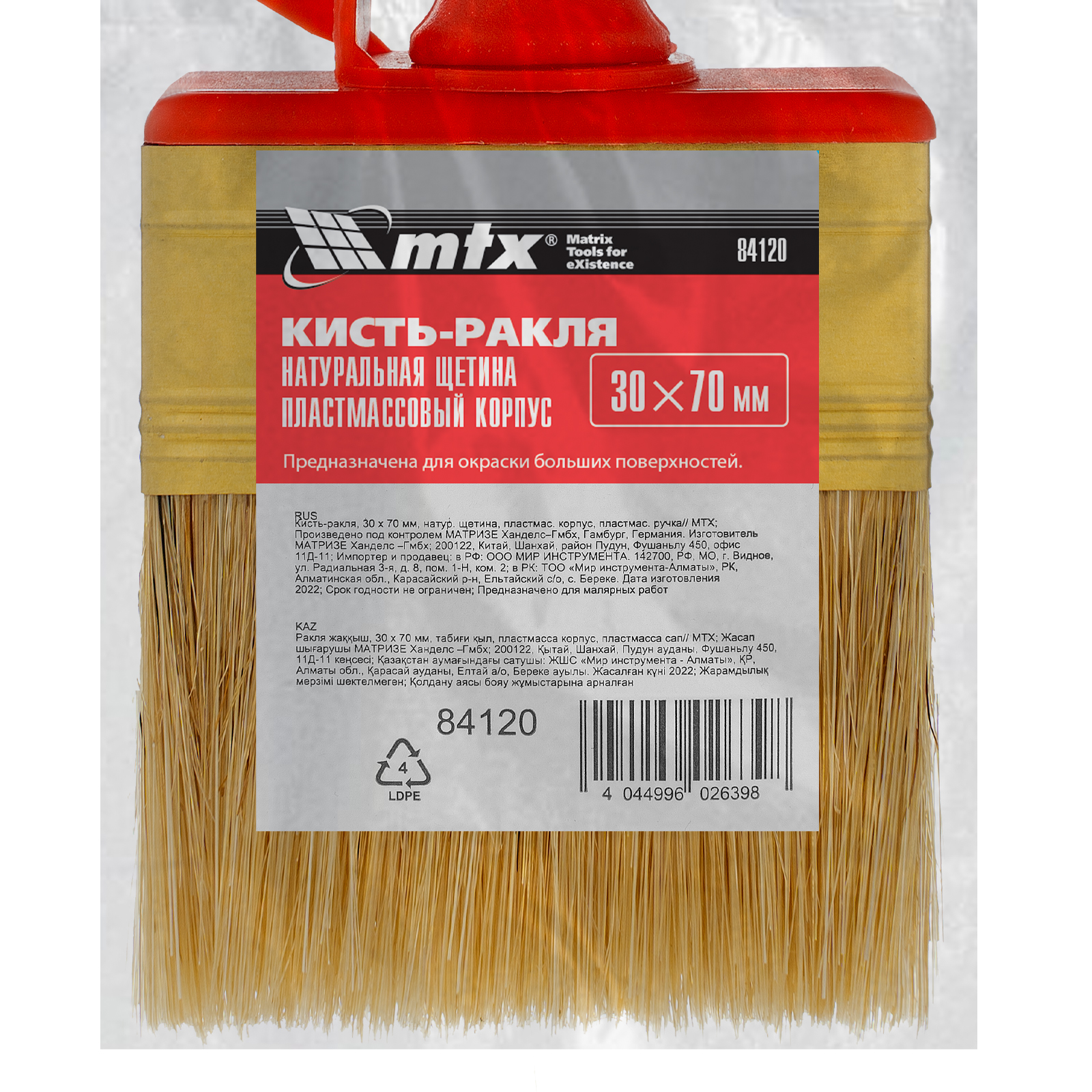 Кисть-ракля, 30 х 70 мм, натуральная щетина, пластмассовый корпус, пластмассовая ручка Mtx