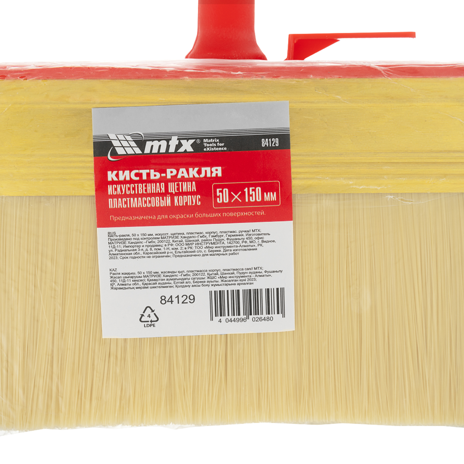 Кисть-ракля, 50 х 150 мм, искусственная щетина, пластмассовый корпус, пластмассовая ручка Mtx