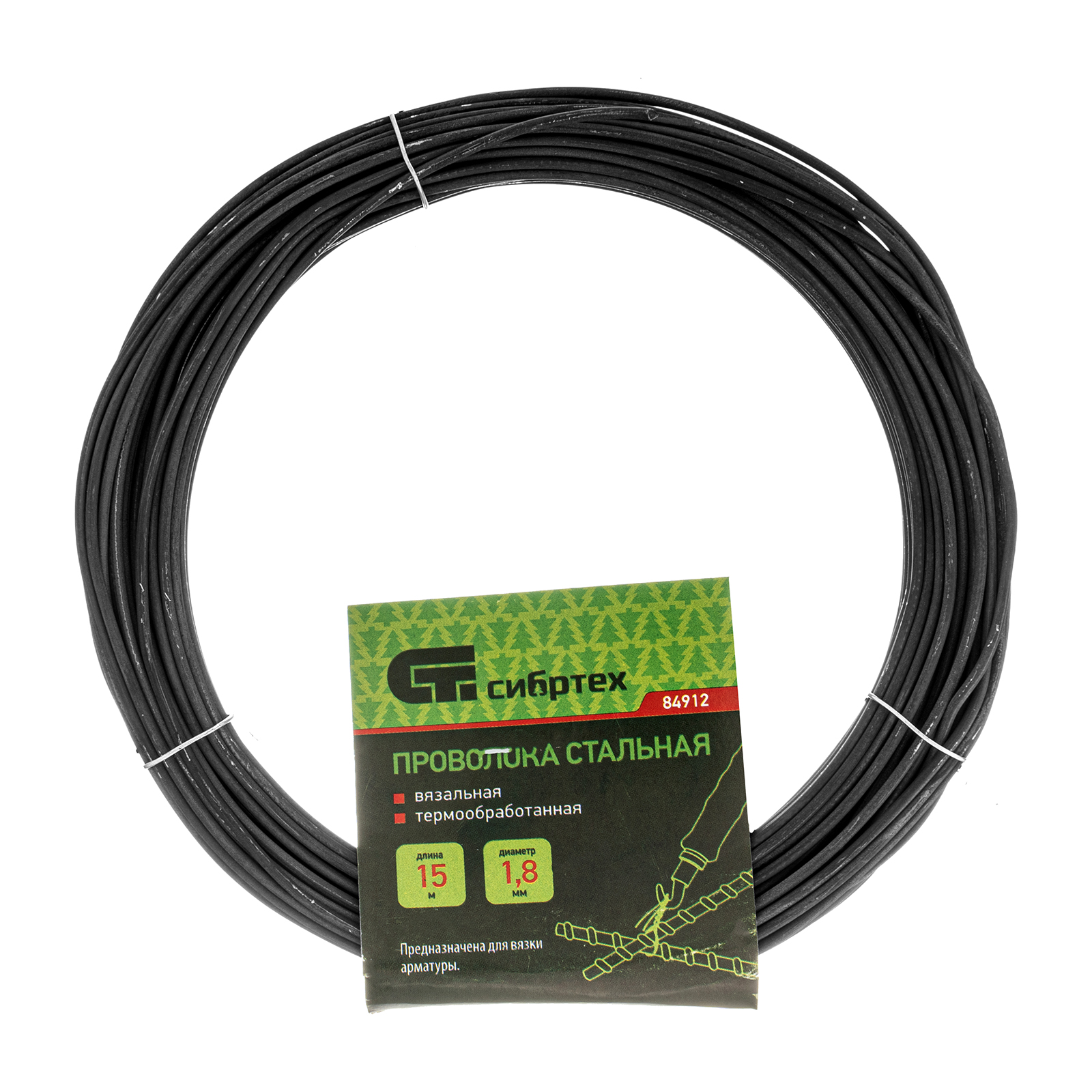 Проволока стальная 15 м, вязальная, термообработанная 1.8 мм сибртех