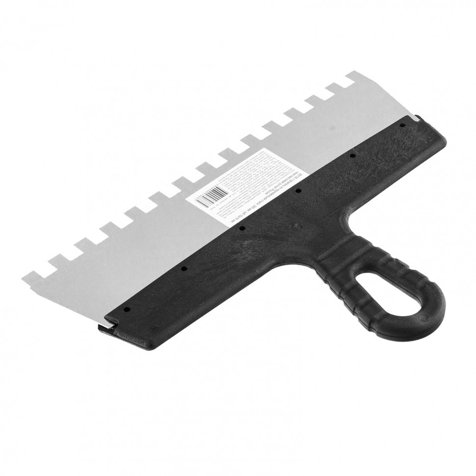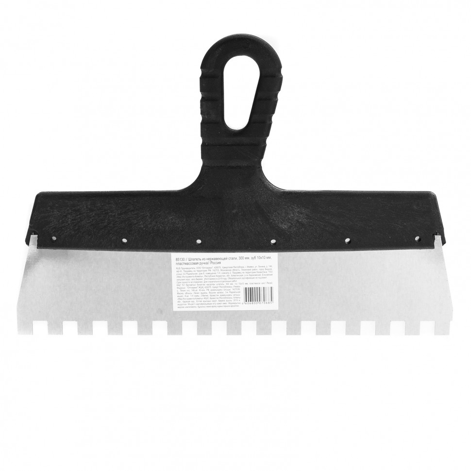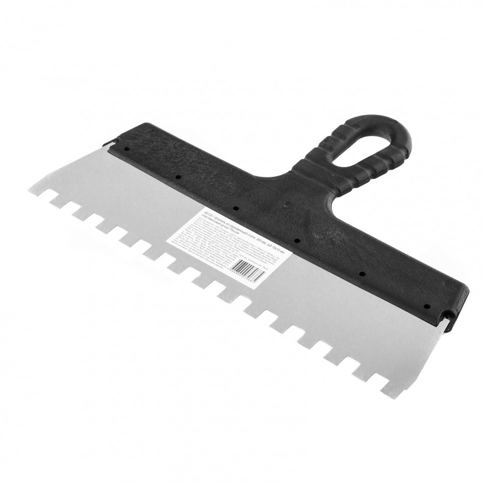 Шпатель из нержавеющей стали, 300 мм, зуб 10 х 10 мм, пластмассовая ручка