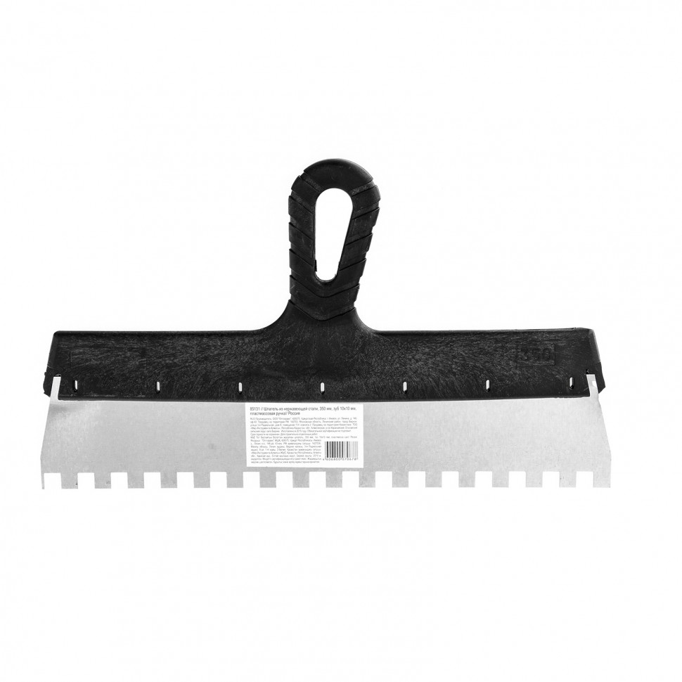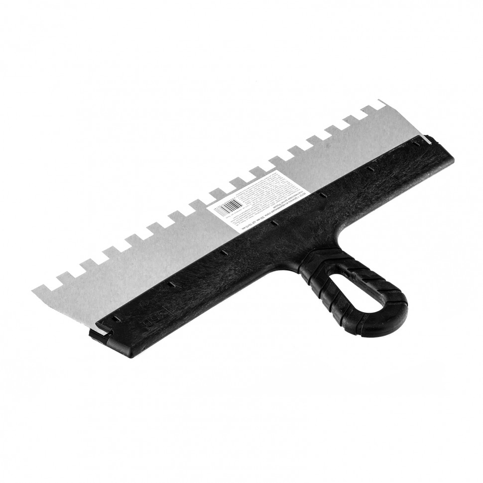 Шпатель из нержавеющей стали, 350 мм, зуб 10 х 10 мм, пластмассовая ручка