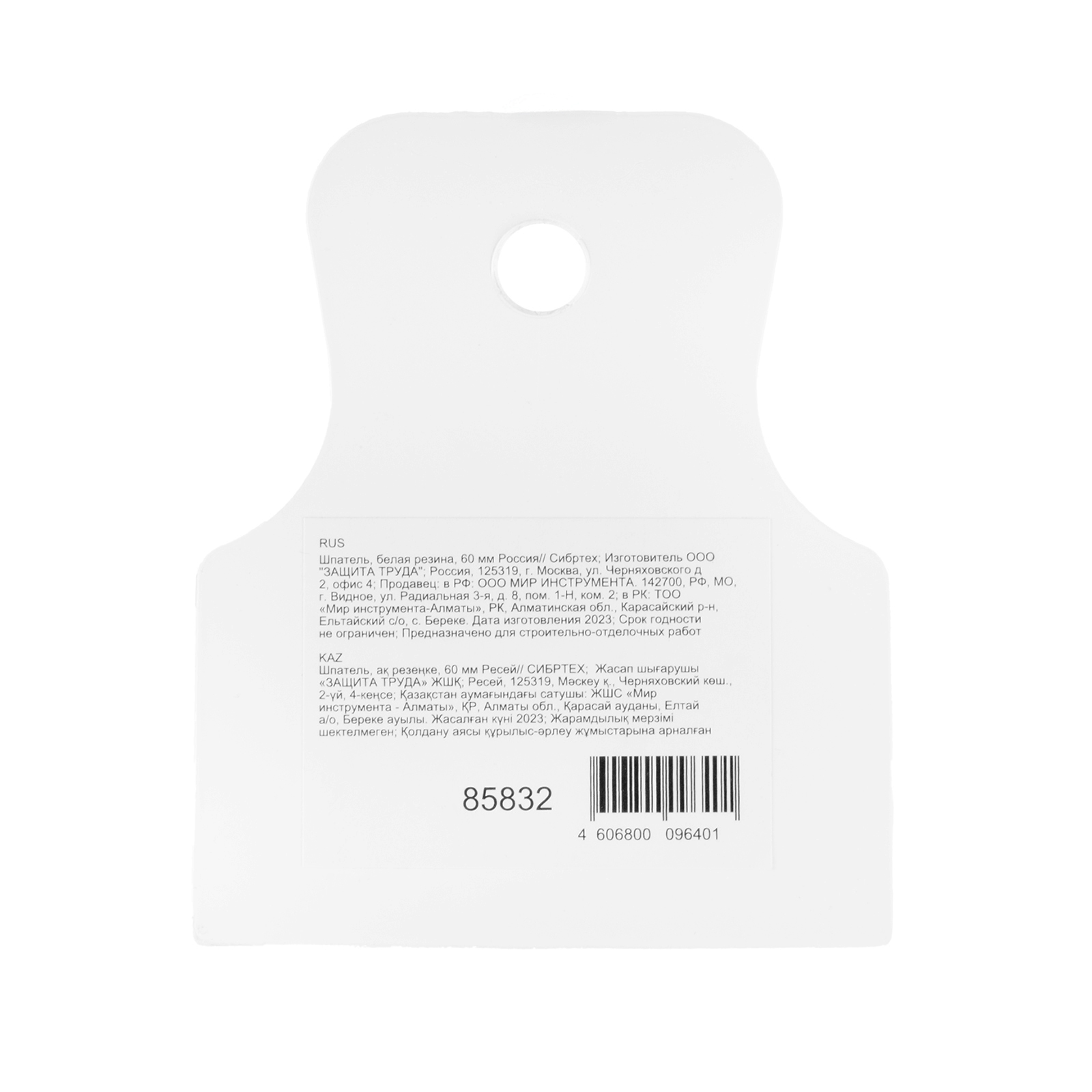 Шпатель, белая резина, 60 мм сибртех