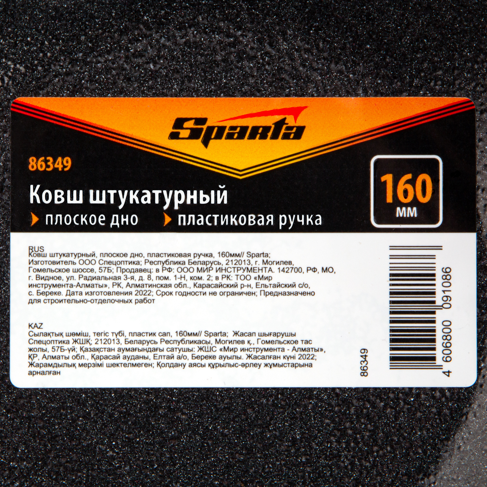 Ковш штукатурный, плоское дно, пластиковая ручка, 160мм Sparta