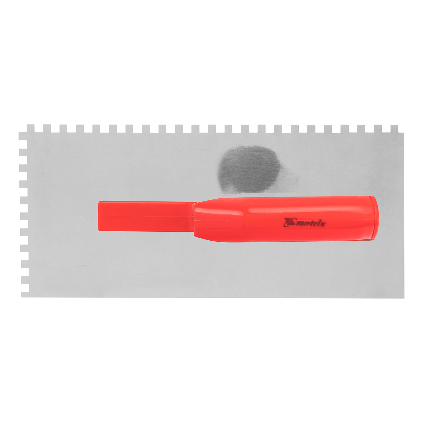 Гладилка стальная, 280 х 130 мм, зеркальная полировка, пластмассовая ручка, зуб 6 х 6 мм Matrix