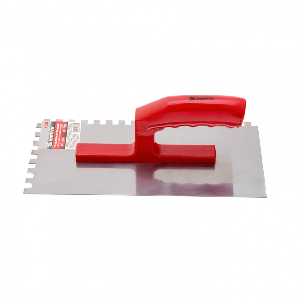 Гладилка стальная, 280 X 130 мм, зеркальная полировка, пластмастмассовая ручка, зуб 10 X 10 мм Matrix