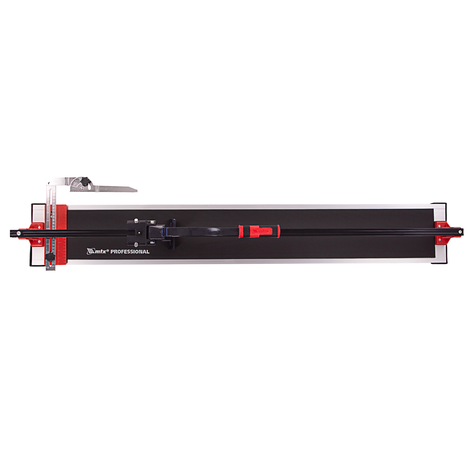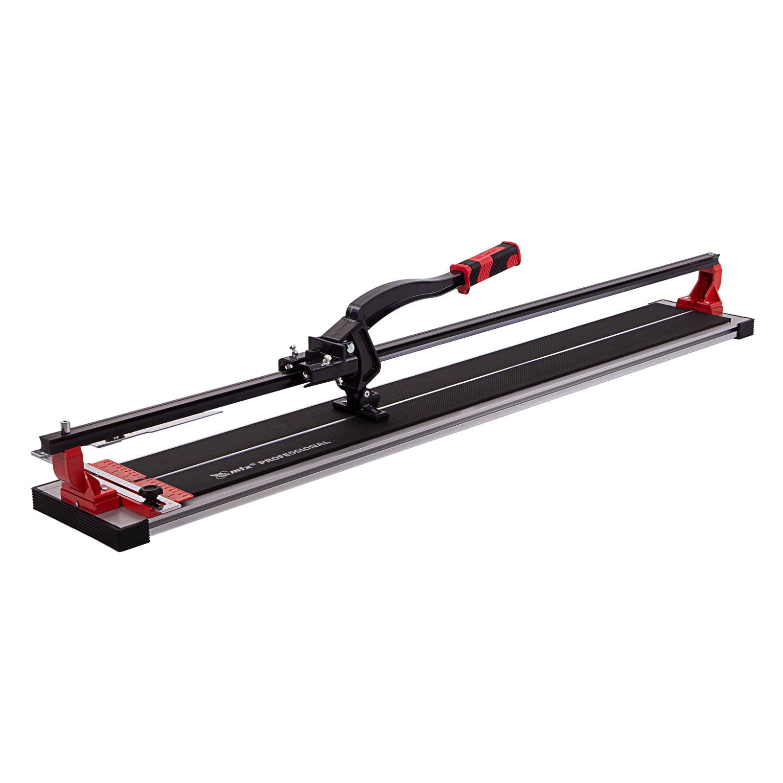 Плиткорез рельсовый 1200 мм mtx. Режущий элемент: ролик Страна производства: Китай Тип упаковки: картонная коробка Длина в упаковке, мм: 1460 Ширина в упаковке, мм: 150 Высота в упаковке, мм: 220 Вес (брутто), кг: 10.75 Плиткорез: 1 шт Рельсовый плиткорез MTX 87693 способен резать плитку длиной до 1200 мм и толщиной до 16 мм для придания ей необходимых размеров. Мощный разделитель справляется с резкой не только керамической, но и керамогранитной плитки. Продуманная конструкция позволяет производить разлом в любой точке поверхности плитки. Инструмент используется во время проведения облицовочных работ. Преимущества Эффективная работа в течение длительного времени — режущий ролик выполнен из твердого сплава ВК-8. Плавный и легкий ход — в конструкции использован качественный направляющий рельс из стального сплава с антикоррозийным покрытием и надежный шарикоподшипниковый механизм. Резка под углом до 45° — производителем предусмотрен поворотный угольник-угломер, обеспечивающий также дополнительную фиксацию плитки. Максимальная устойчивость рукоятки при резке — прижимной обхват рельса каретки регулируется специальным болтами, что обеспечивает полное отсутствие люфта между кареткой и рельсом. Надежный захват — обрезиненная рукоятка удобно ложится в руку и не выскальзывает из ладони. Удобная транспортировка — станина из алюминиевого сплава не утяжеляет конструкцию.  развернуть описание ▼