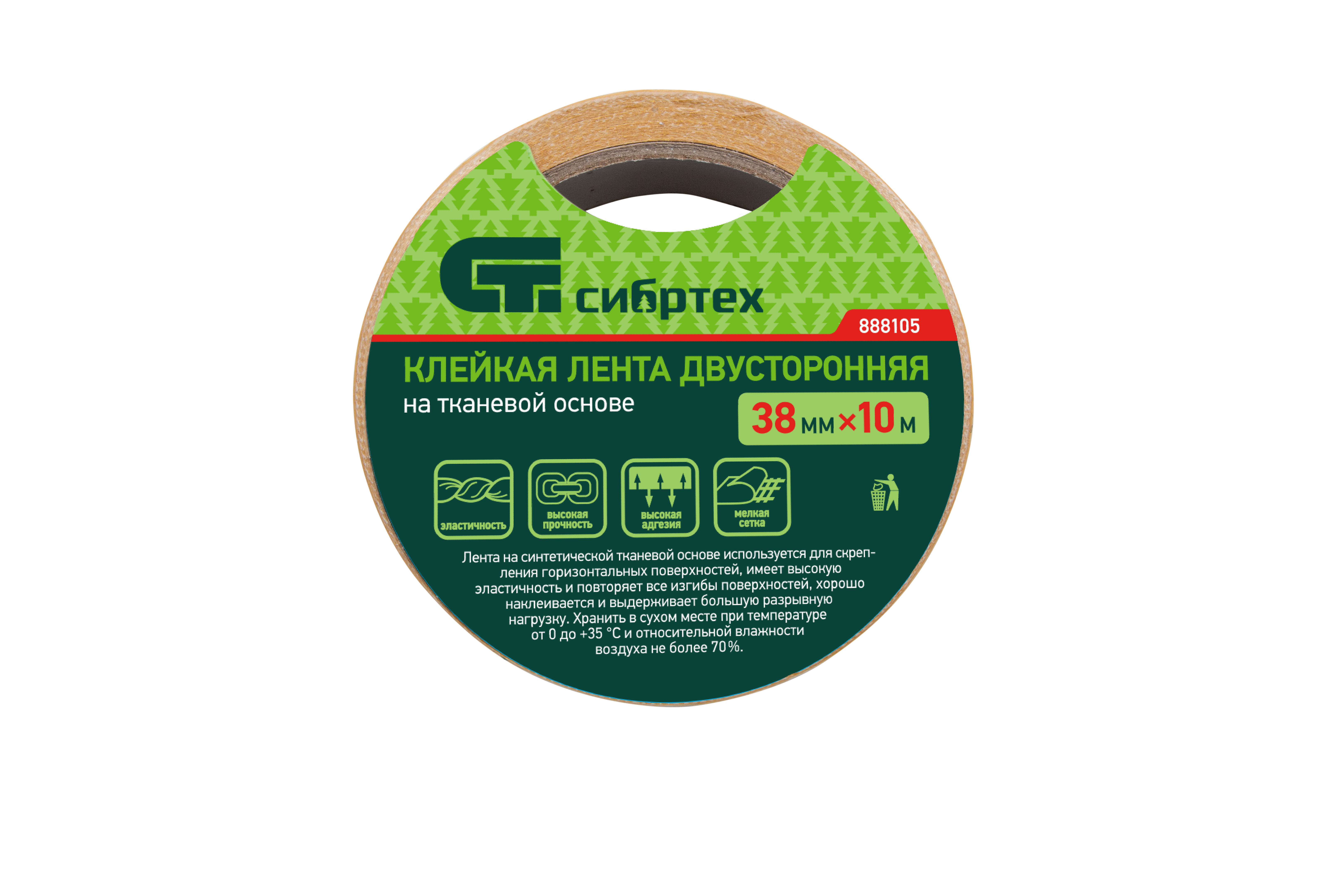 Лента клейкая двусторонняя, 38 мм х 10 м, на тканевой основе сибртех
