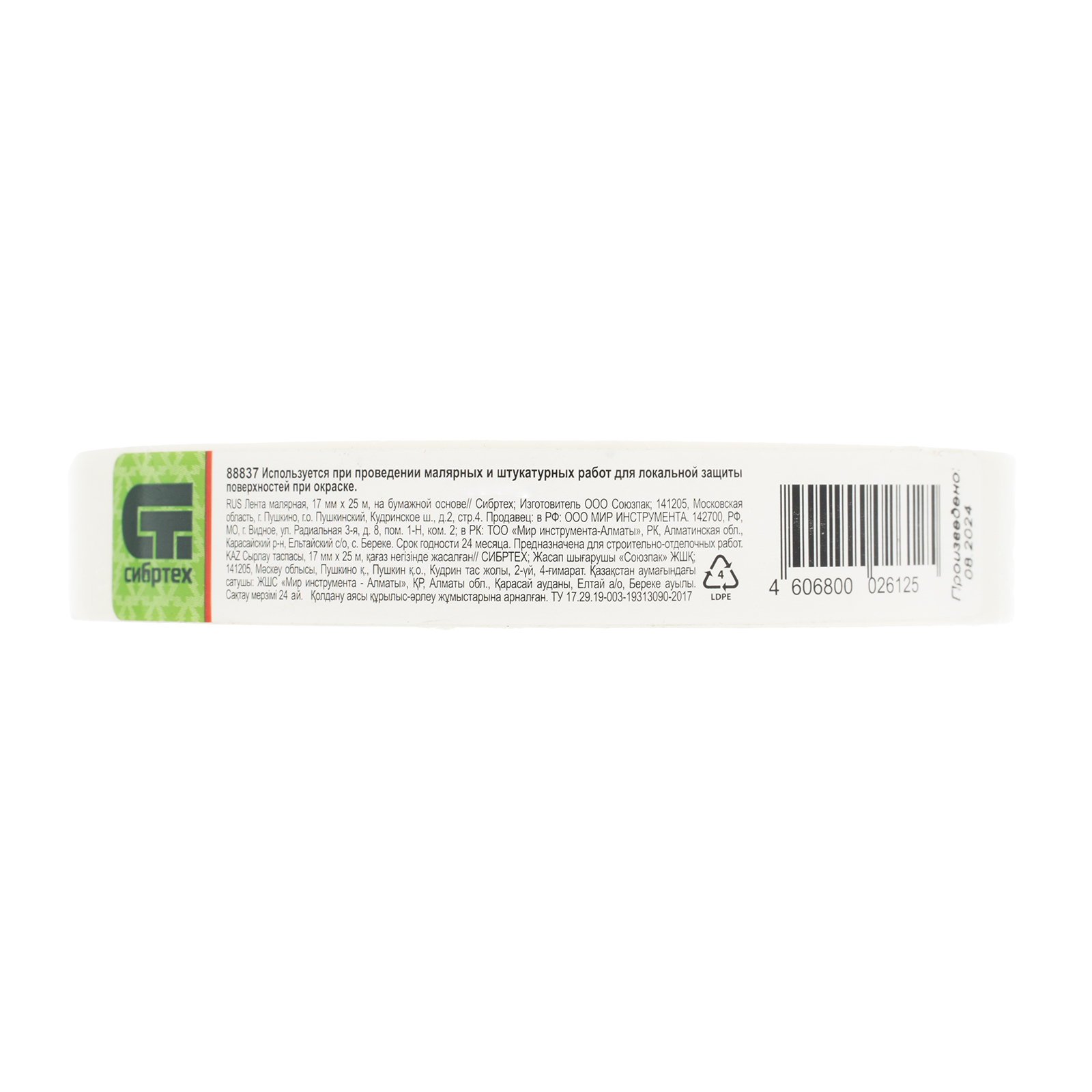 Лента малярная, 17 мм х 25 м, на бумажной основе сибртех
