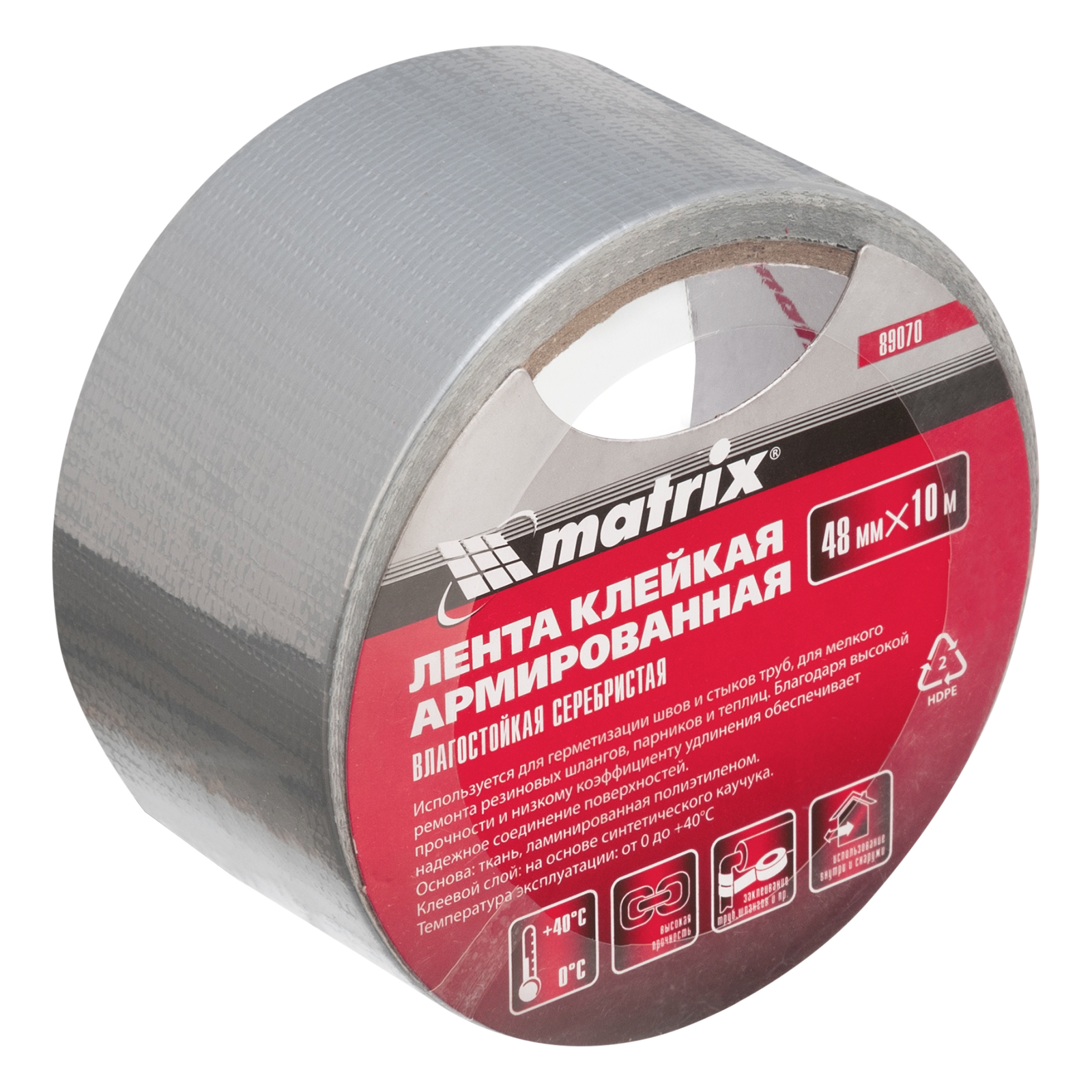 Лента клейкая армированная, влагостойкая, 48 мм х 10 м, серебристая Matrix