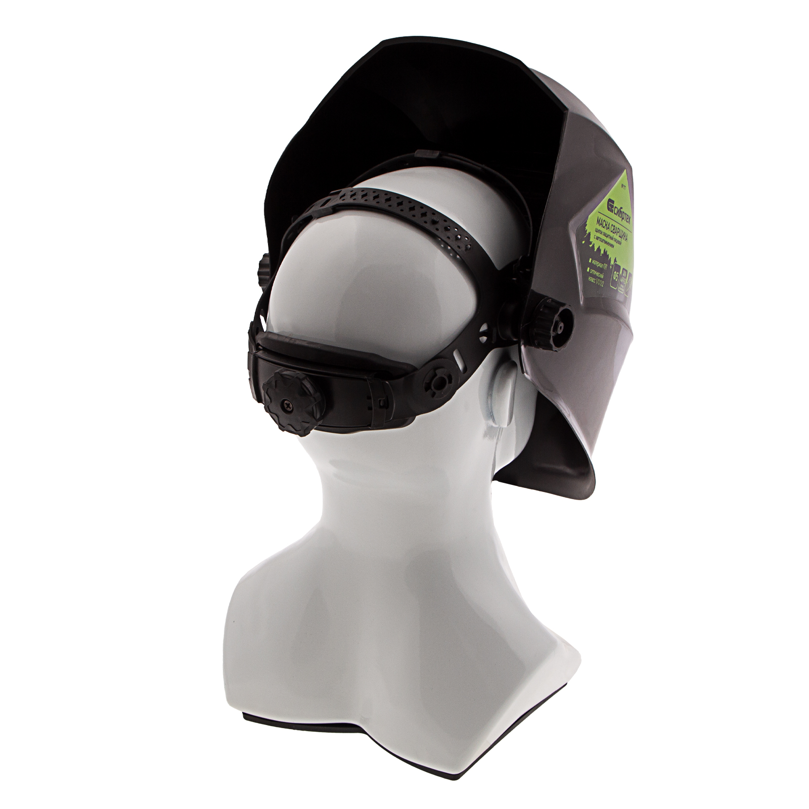 Щиток защитный лицевой (маска сварщика) с автозатемнением ф5, коробка сибртех.   Бренд: Сибртех  Время затемнения: 1u002F25000 с  Гарантия: 1 год  Материал: пластик  Область применения: подходит для газосварки  Особенности: автоматический светофильтр, плавная внутренняя регулировка чувствительности и затемнения, режим   Рабочая температура: от -5 до +55 °С  Размер экрана: 93 х 43 мм  Степень затемнения в светлом состоянии: DIN4  Степень затемнения в темном состоянии: DIN913  Тип питания: Солнечная панель с батареей CR2032 Li-Ion  Тип светофильтра: хамелеон  Тип упаковки: картонная коробка  Ширина в упаковке, мм: 227  Вес (брутто), кг: 0.76  Маска сварщика: 1 шт  Руководство по эксплкатации: 1 шт  Защитный лицевой щиток, или маска сварщика, Сибртех Ф5 89177 с автозатемнением, упакованный в картонную коробку, закрывает глаза, лицо и шею мастера от света дуги, искр, ультрафиолета и горячих брызг. Предохраняет также от ожогов вследствие высоких температур во время сварочных работ.  Преимущества  Выбор оптимального режима работы — специальные регуляторы позволяют устанавливать уровень чувствительности, время задержки и степень затемнения в диапазоне 9-13 DIN.  Возможность длительного использования — щиток питается от солнечной, а также съемной литиевой батареи.  Надежность — маска выполнена из прочного термостойкого пластика.  Комфортная работа — регулируемое оголовье надежно фиксирует щиток, а поролоновая накладка и силиконовый обтюратор уменьшают трение ободка о лоб.  Небольшой вес 460 г — длительная работа в маске не вызывает усталость.  развернуть описание ▼