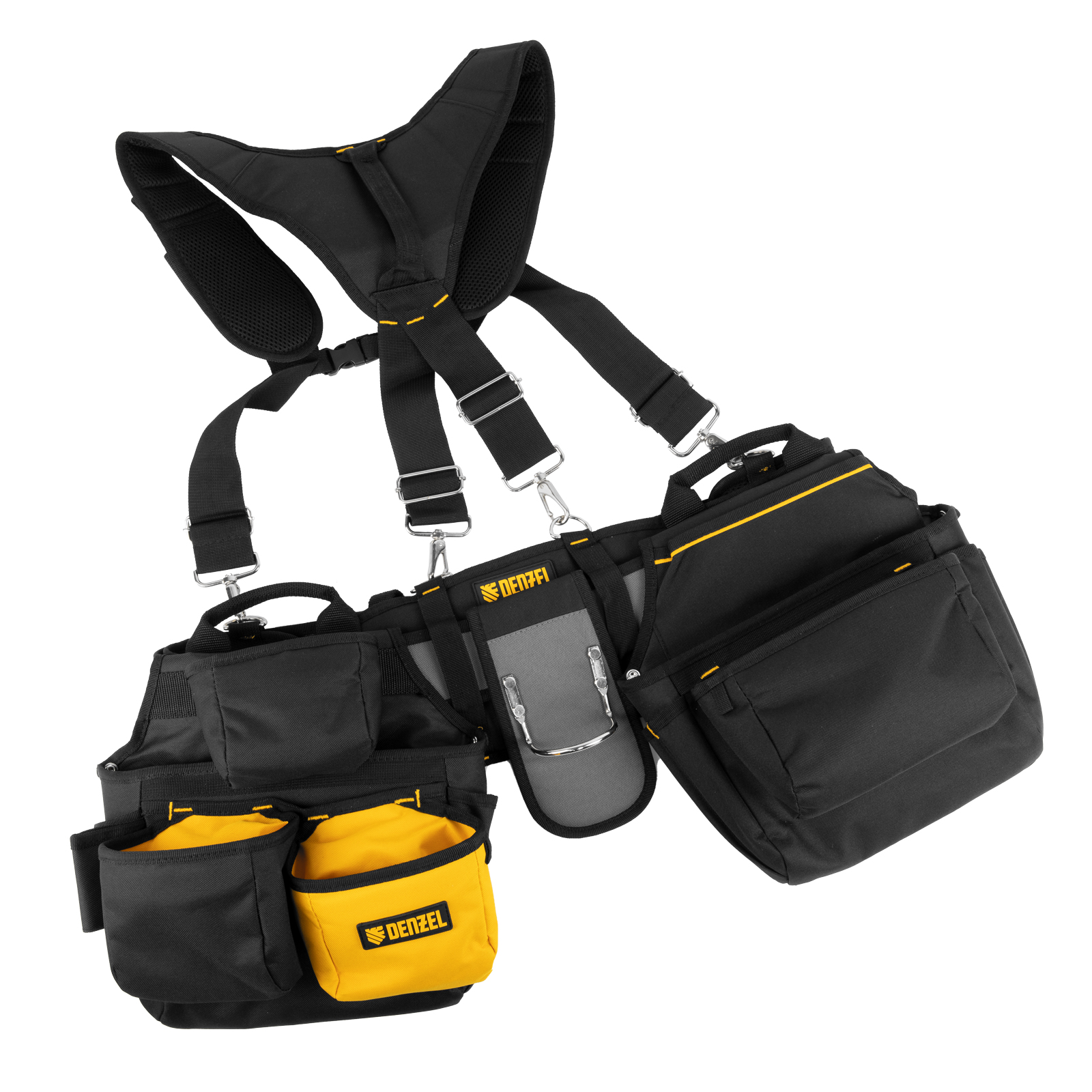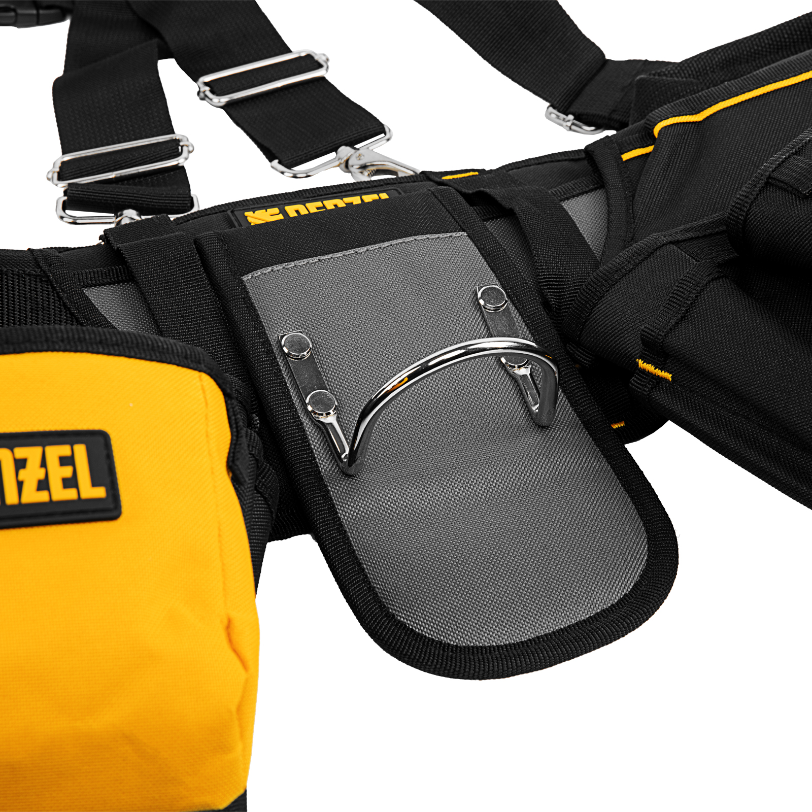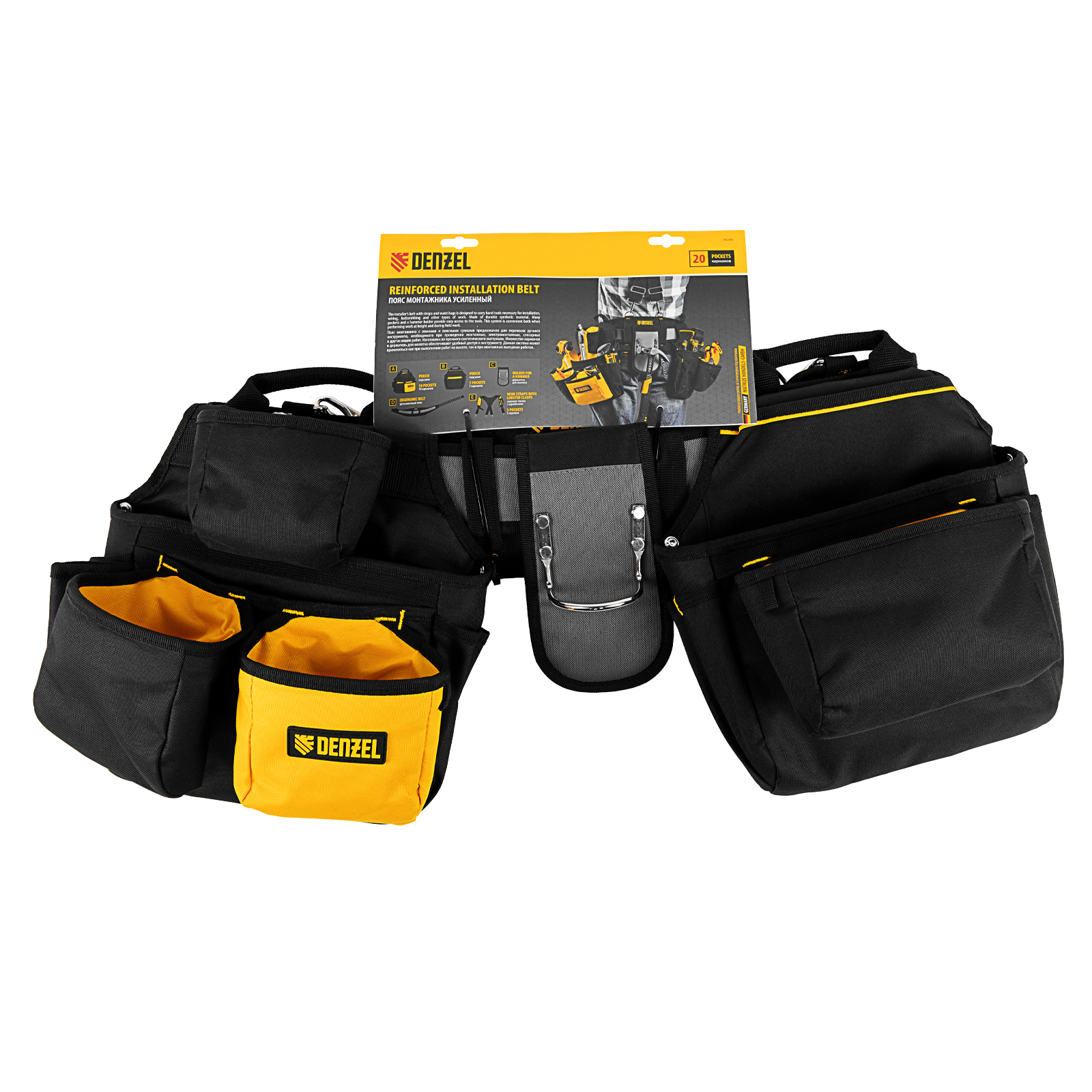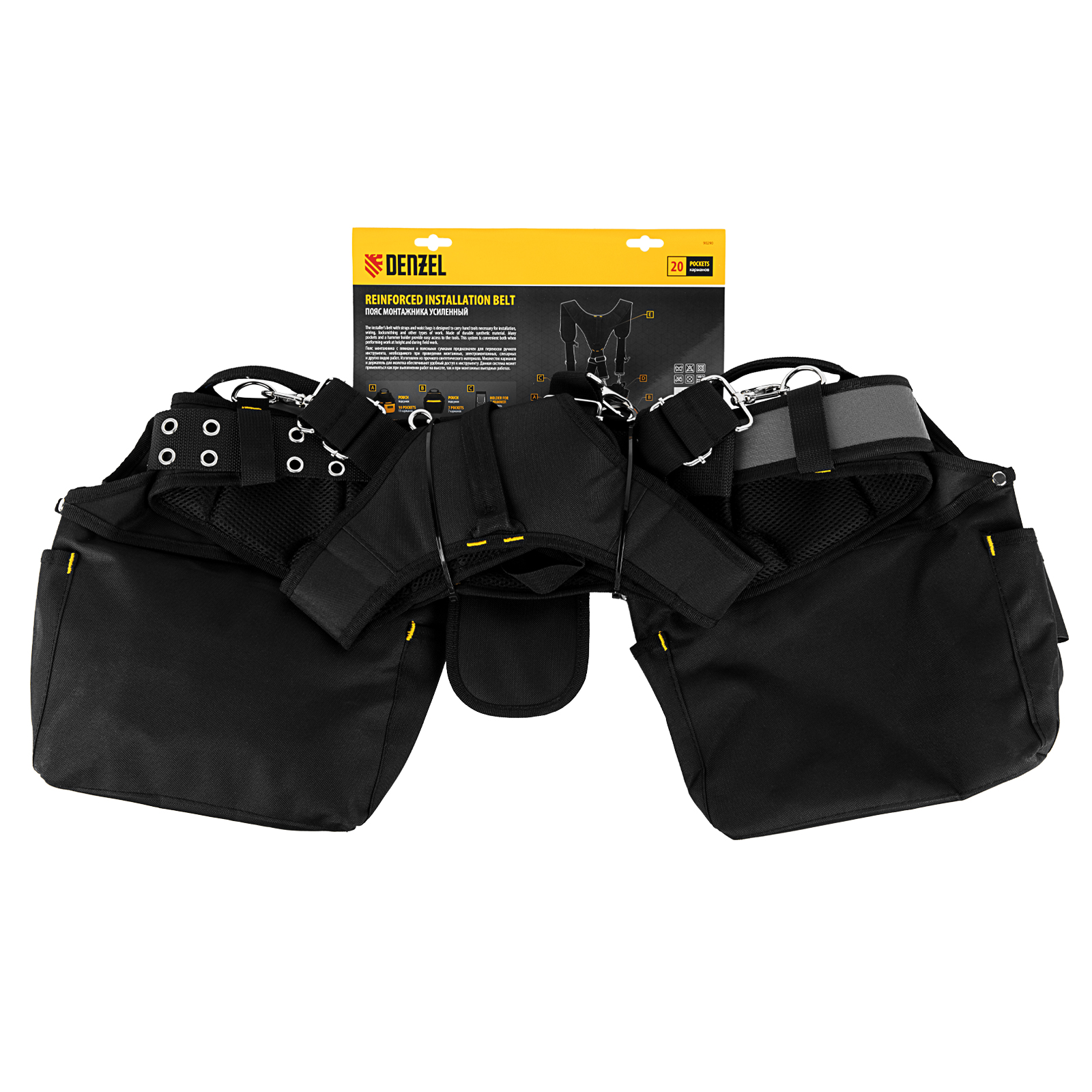Пояс монтажника усиленный, с лямками, сумки поясные, держатель для молотка denzel. Бренд: DENZEL Материал: полиэстер Страна производства: Китай Длина в упаковке, мм: 750 Ширина в упаковке, мм: 350 Высота в упаковке, мм: 70 Вес (брутто), кг: 1.9 Поясная система: 1 шт Усиленный пояс монтажника Denzel 90290 с лямками, поясными сумками и держателем для молотка оптимален для работы на высоте или на выезде. Обеспечивает быстрый доступ к нужным инструментам, оставляя руки свободными. Незаменим для выполнения монтажных, слесарных, электромонтажных и других работ. Преимущества Прочность — поясные сумки из полиэстера плотностью 600 D не рвутся и не протираются, карманы надежно зафиксированы при помощи заклепок. Функциональность — 2 группы подсумков с 7 и 10 карманами, а также 3 дополнительных кармана на лямках позволяют разместить различные инструменты, крепеж и расходники. Надежная конструкция — лямки оснащены быстросъемными карабинами, ремень имеет пряжку с 2 язычками и отверстия с металлическими люверсами, роль направляющей для него выполняет кушак с креплением «velcro», максимальной шириной 165 мм и длиной 920 мм. Держатель для молотка — металлическая скоба надежно зафиксирована на поясной накладке при помощи стальных заклепок. Широкие возможности — у подсумков имеются ручки для переноски, благодаря чему их можно использовать отдельно. Универсальный размер — ремень максимальной длиной 1450 мм имеет множество отверстий, поэтому его можно точно подогнать под обхват талии пользователя. Эргономичность — регулируемые широкие лямки равномерно распределяют вес инструментов, уменьшая нагрузку на спину.  развернуть описание ▼