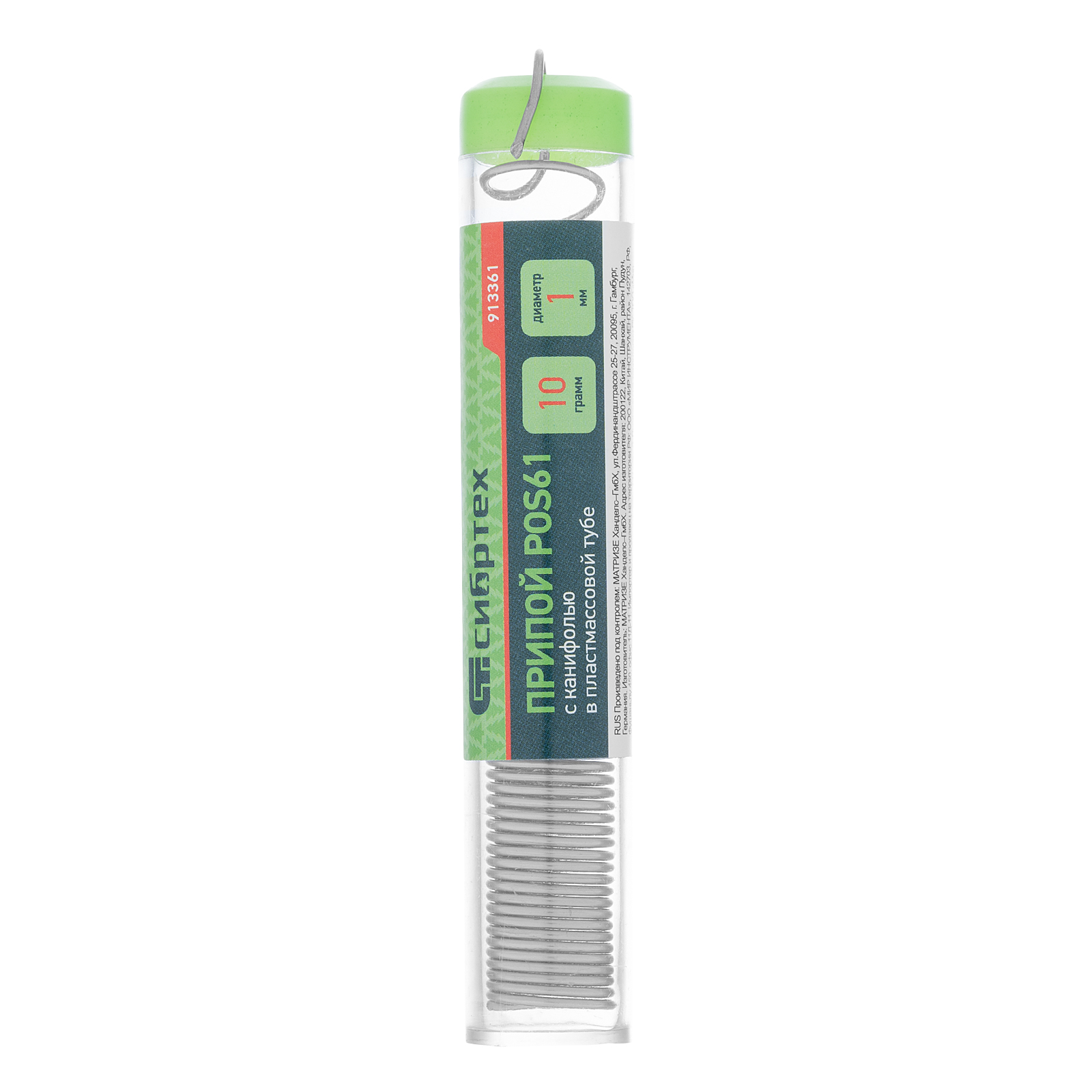 Припой с канифолью, d 1 мм, 10 г, pos61, в пластмассовой тубе сибртех. Бренд: Сибртех