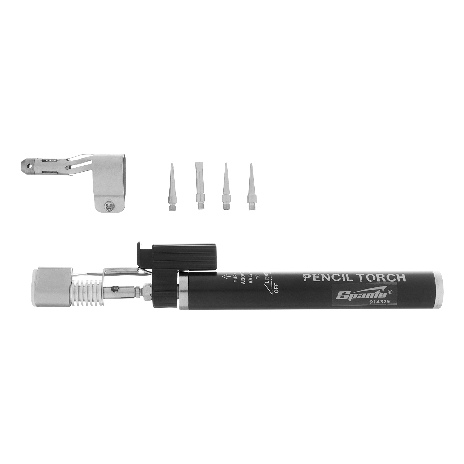 Горелка газовая, тип карандаш c пьезоподжигом + 4 насадки для пайки, 200 мм sparta.