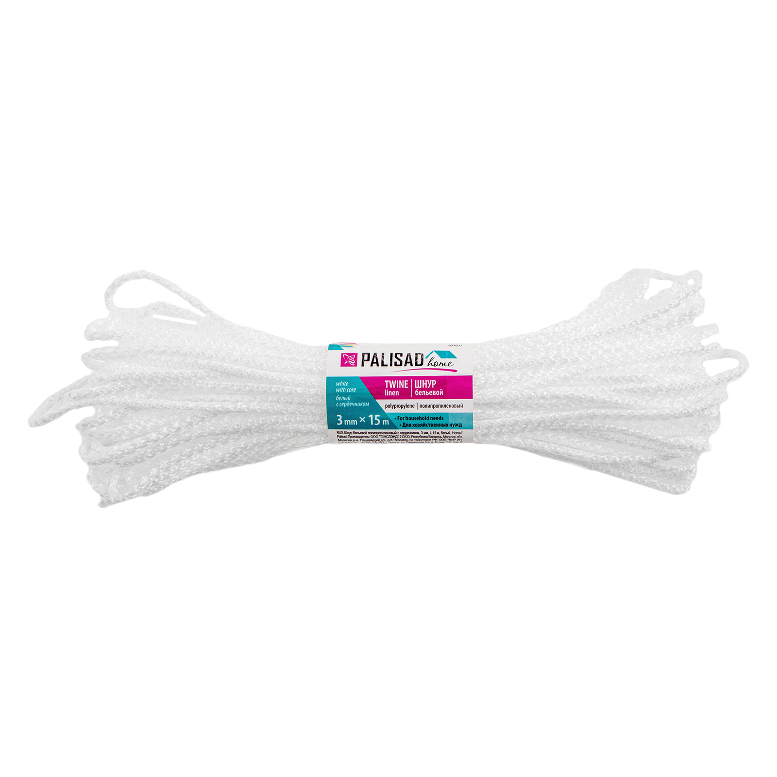 Шнур бельевой полипропиленовый с сердечником, 3 мм, L 15 м, белый, Home Palisad