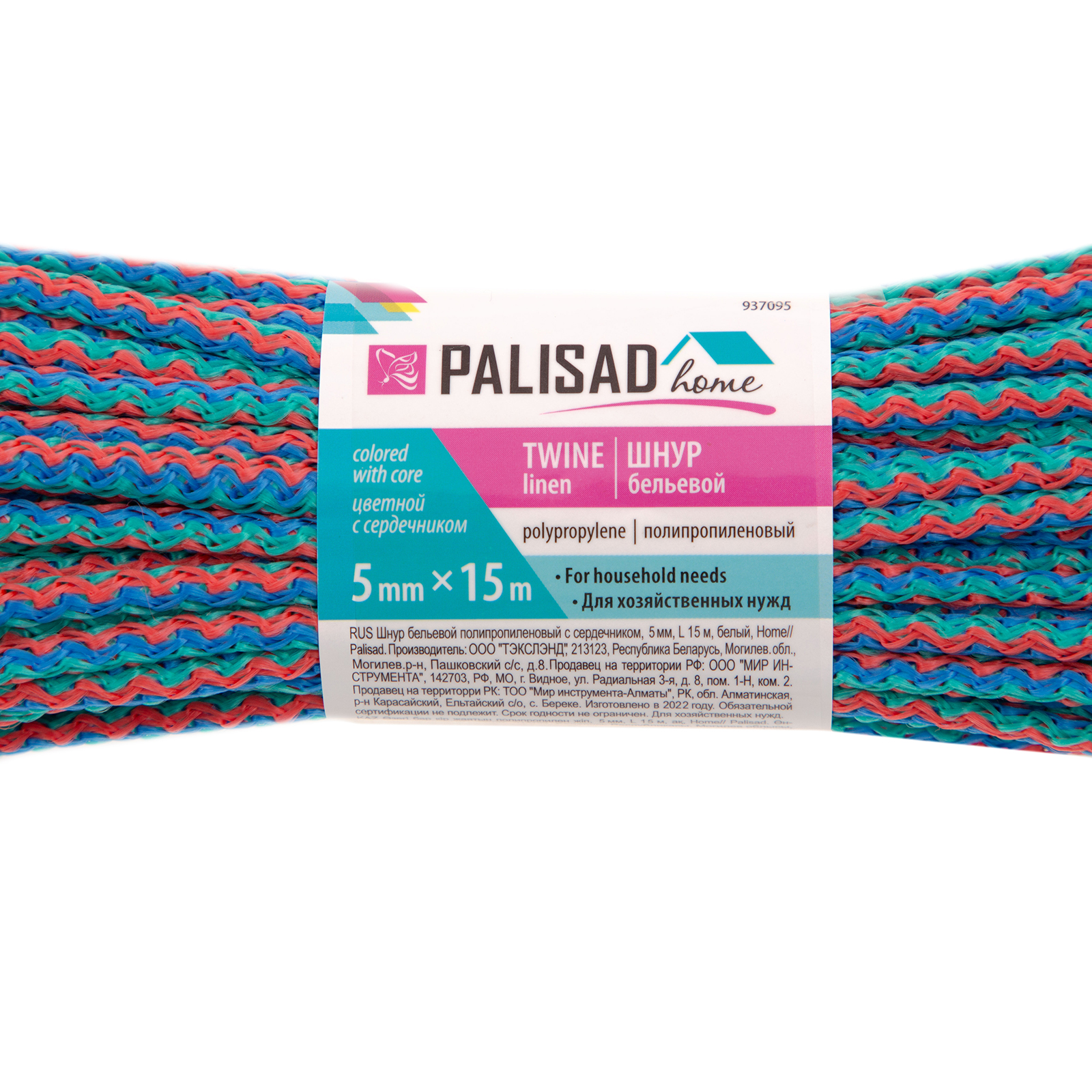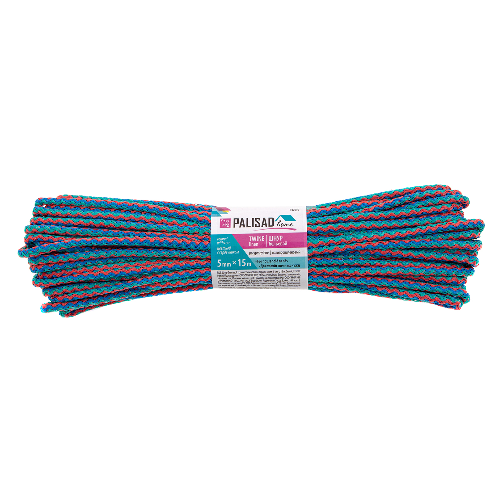 Шнур бельевой полипропиленовый с сердечником, 5 мм, L 15 м, цветной, Home Palisad