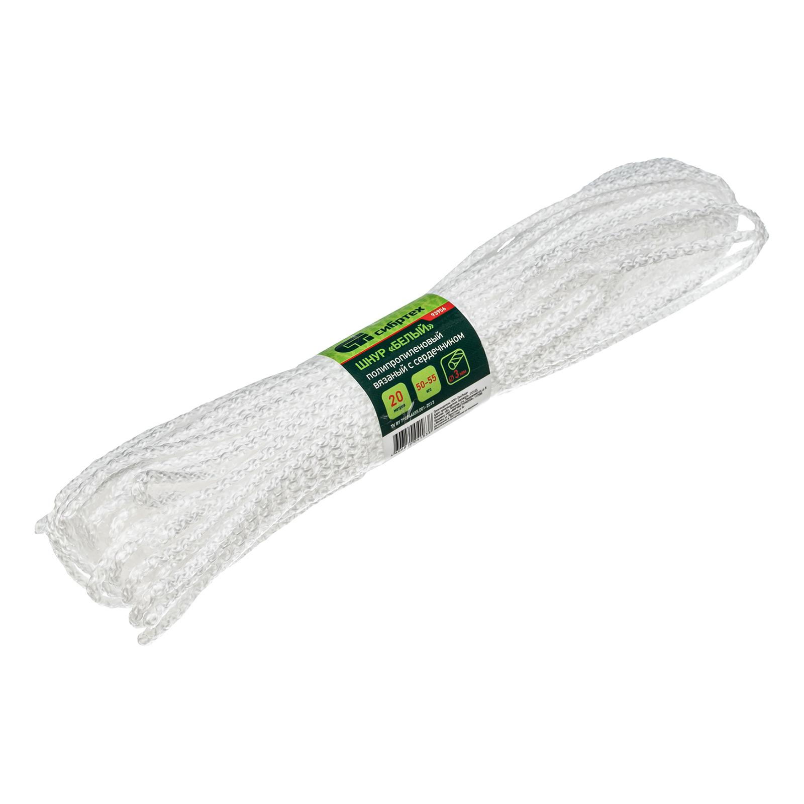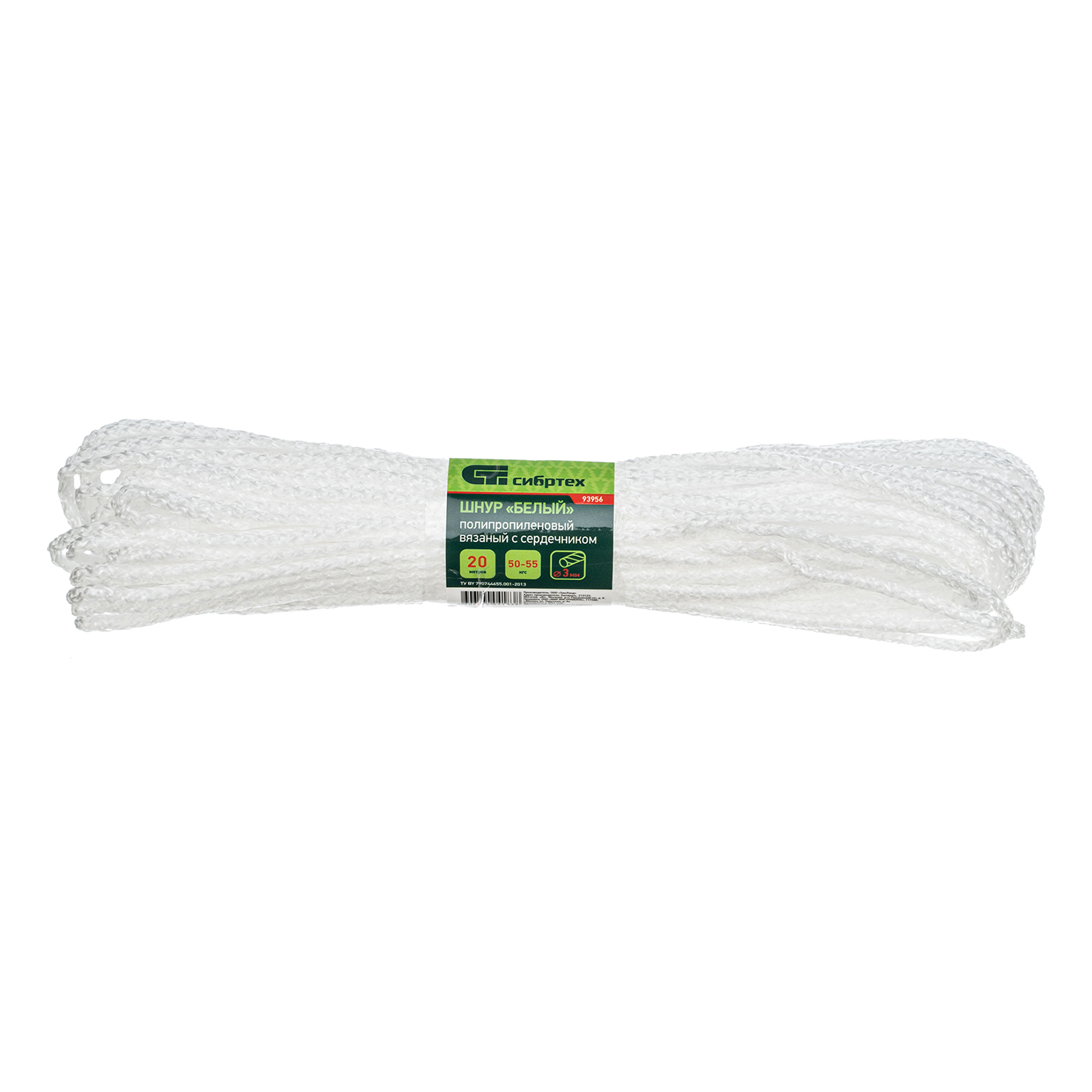 Шнур вязаный полипропиленовый с серд. белый, 3 мм, L 20 м, сибртех