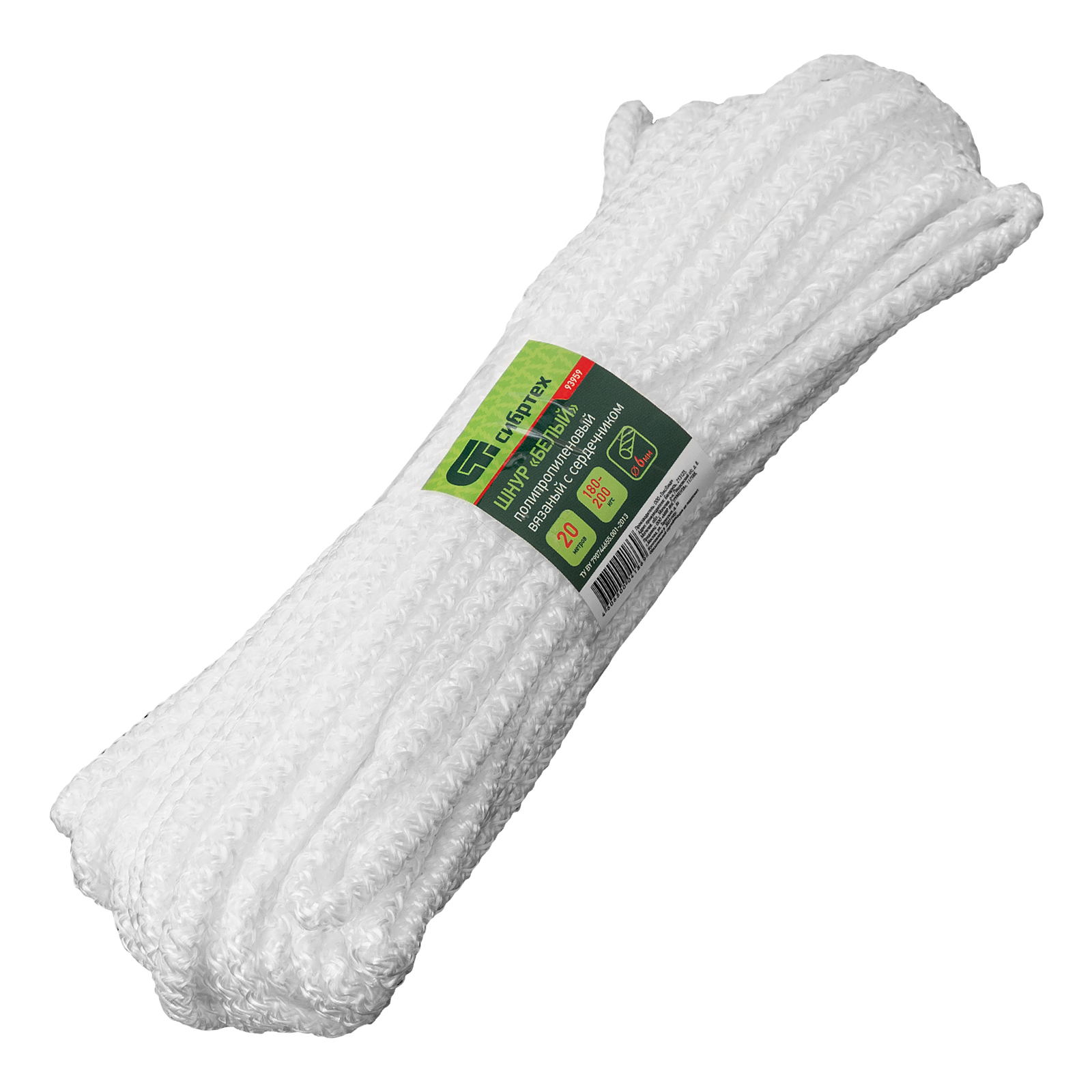 Шнур вязаный полипропиленовый с серд. белый, 6 мм, L 20 м, сибртех