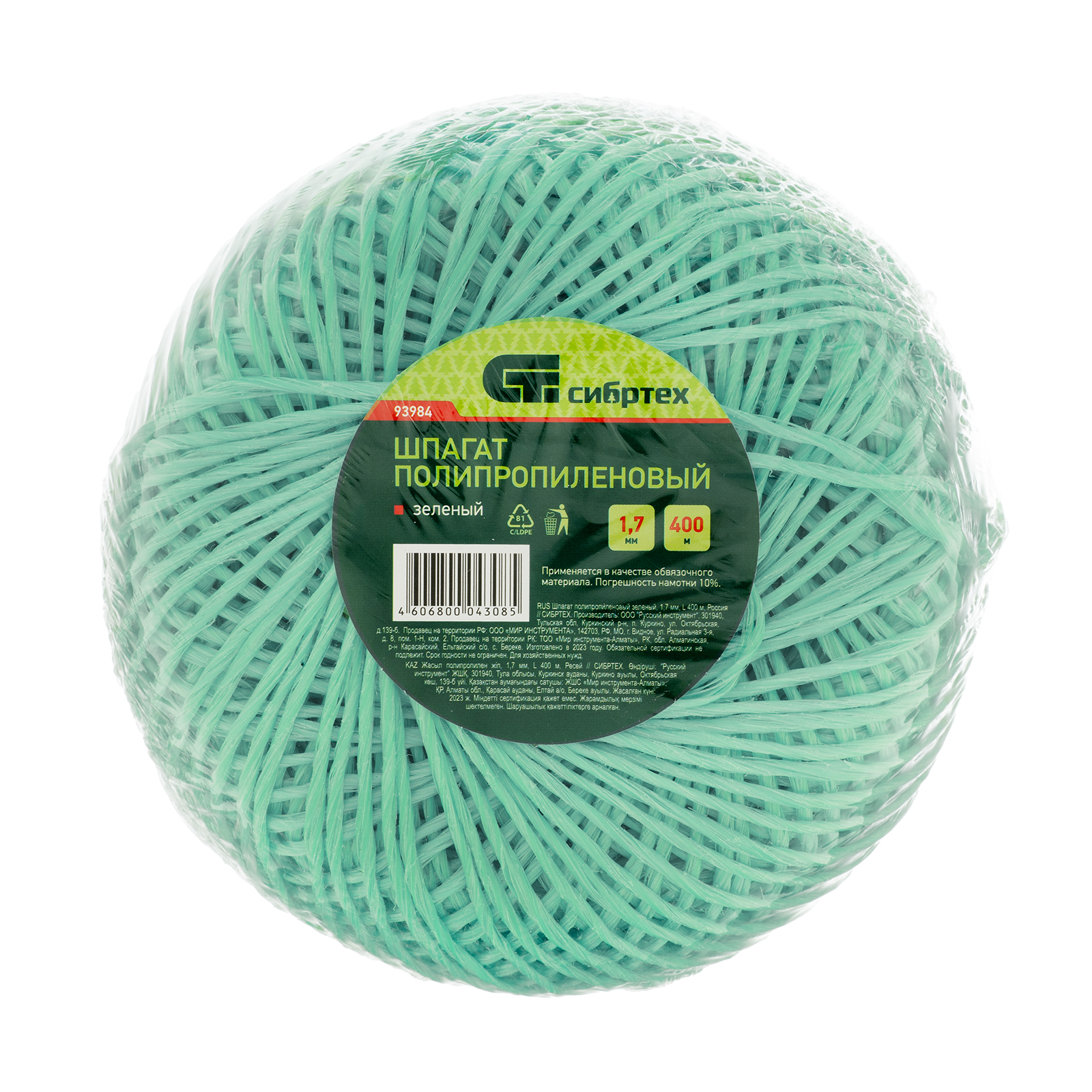 Шпагат полипропиленовый зеленый, 1.7 мм, L 400 м, сибртех