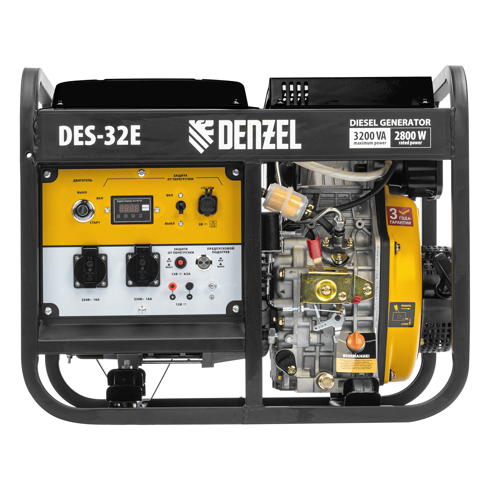 Генератор дизельный Des-32e, 3,2 квт, 230 в, 11 л, электростартер Denzel