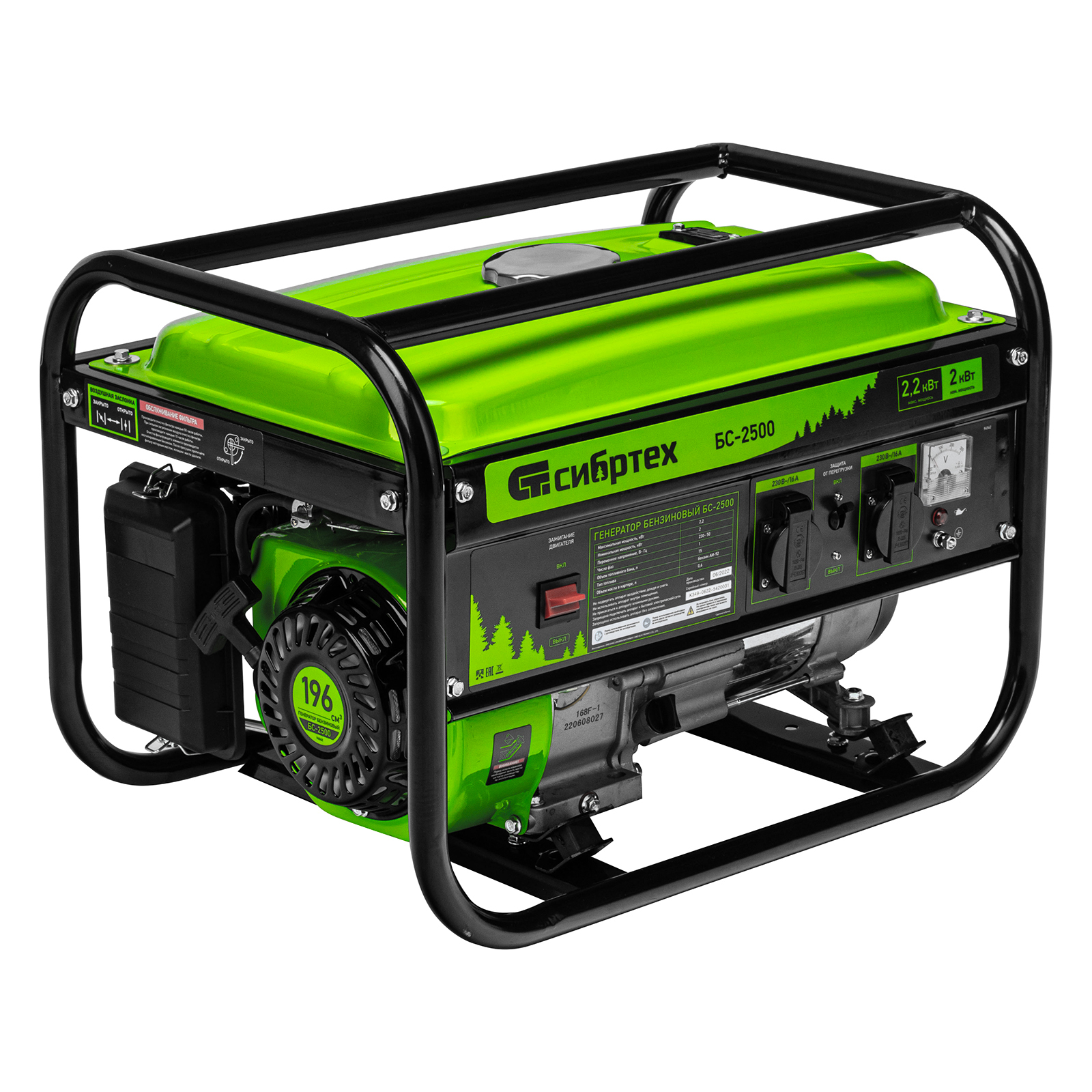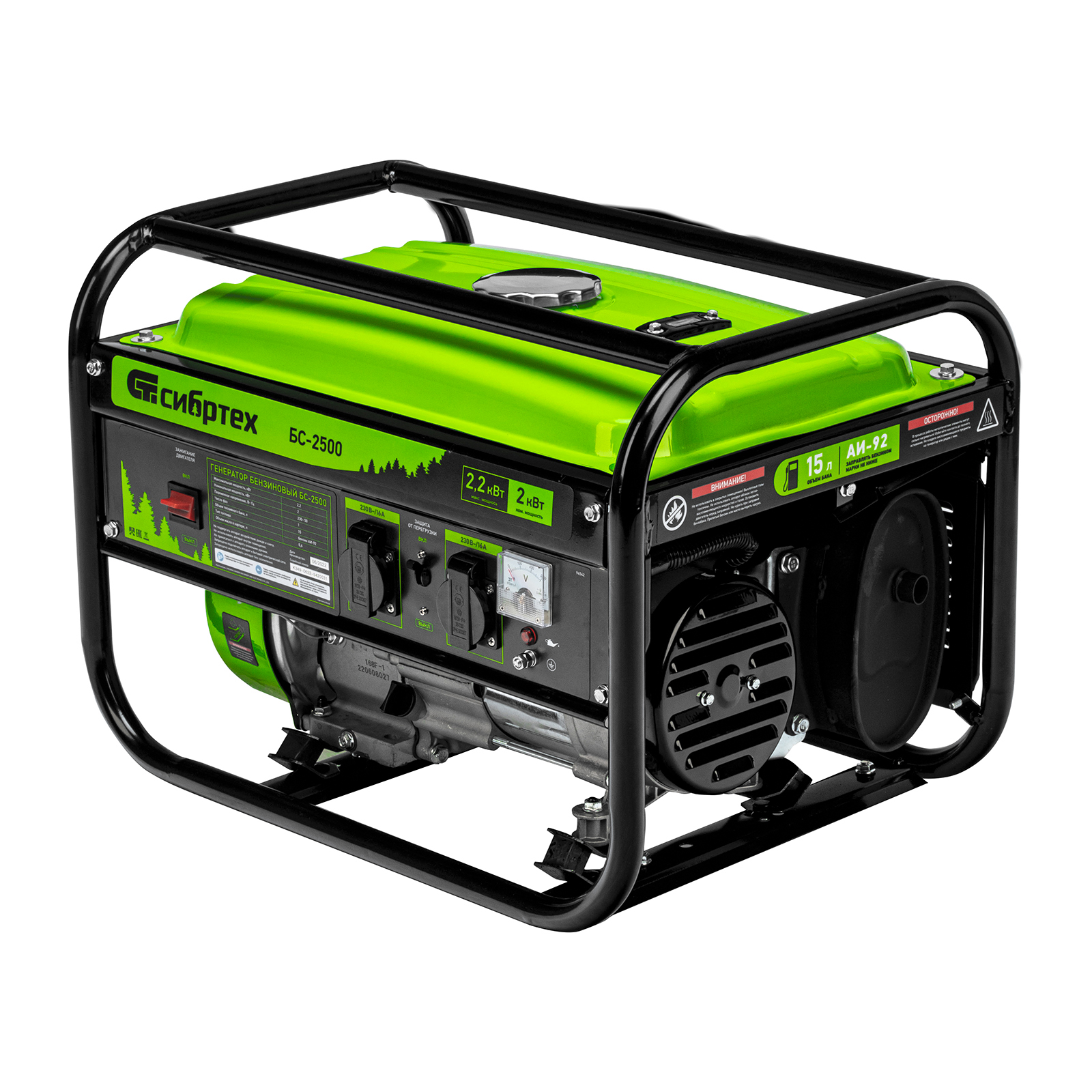 Генератор бензиновый бс-2500, 2.2 квт, 230в, четырехтактный, 15 л, ручной стартер сибртех
