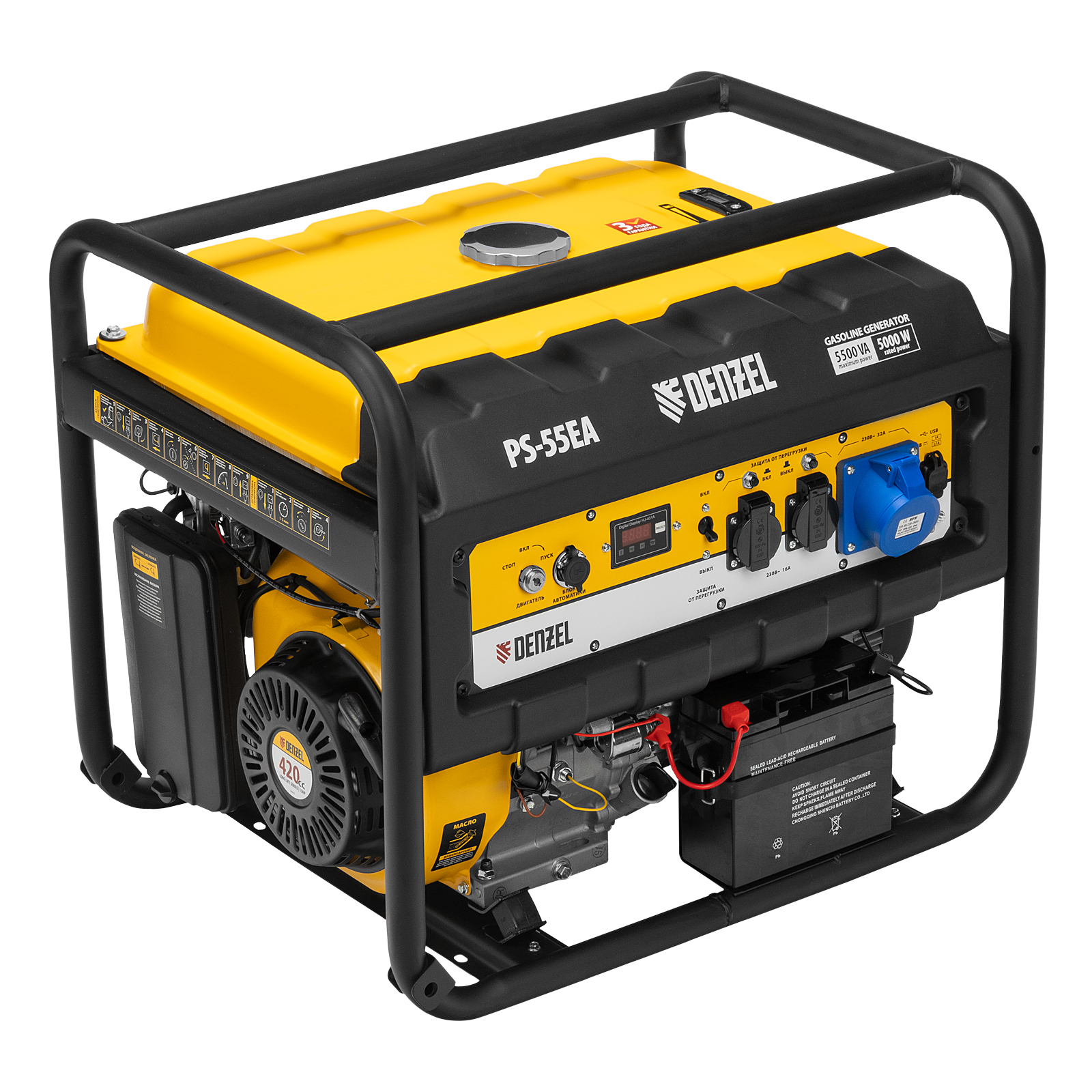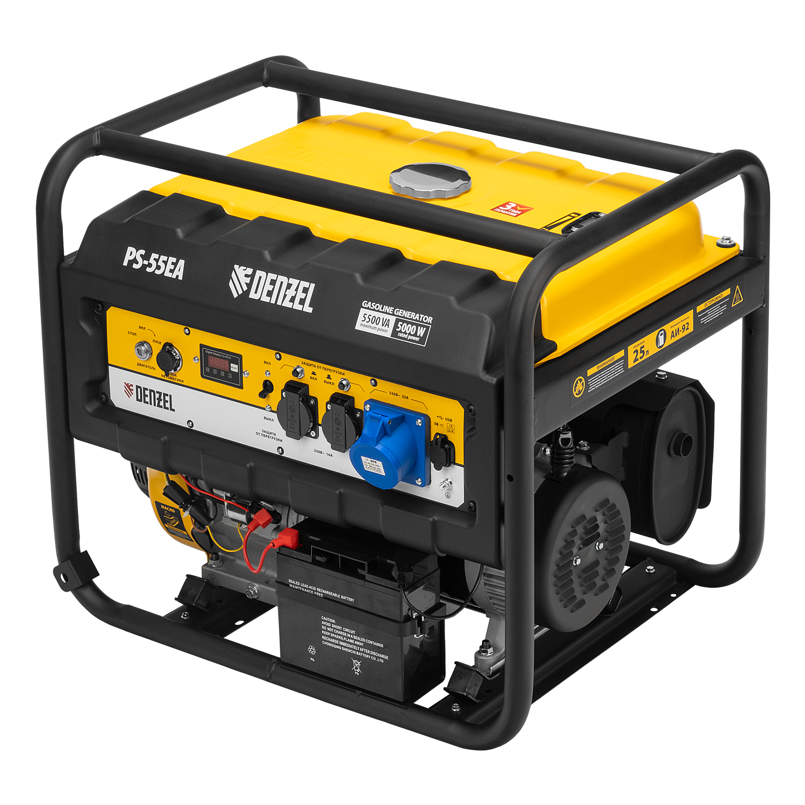 Генератор бензиновый Ps 55 Ea, 5.5 квт, 230 в, 25 л, коннектор автоматики, электростартер Denzel